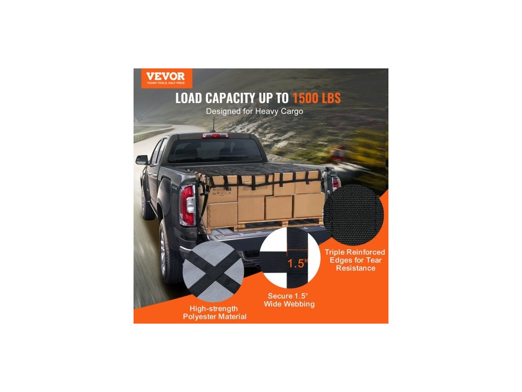 Síť Cargo Net, 72" x 57" (172 cm x 147 cm), těžká síť pro nákladní automobily na korbu, 4 nastavitelné popruhy s karabinami a S-háky, odolná proti opotřebení a povětrnostním vlivům, vhodná pro pickup, nákladní automobil, džíp, SUV, loď
