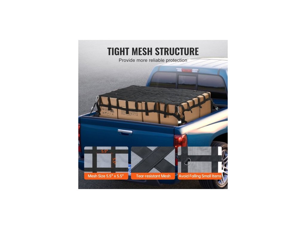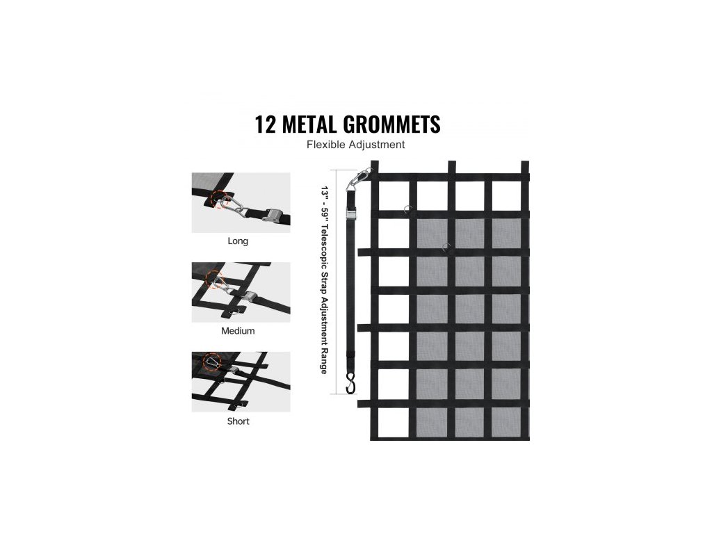 Síť Cargo Net, 72" x 57" (157 cm x 147 cm), těžká nákladní síť pro korbu nákladního vozu, 4 nastavitelné popruhy s karabinami a S-háky, odolná proti opotřebení a povětrnostním vlivům, vhodná pro pickup, nákladní vůz, džíp, SUV, loď