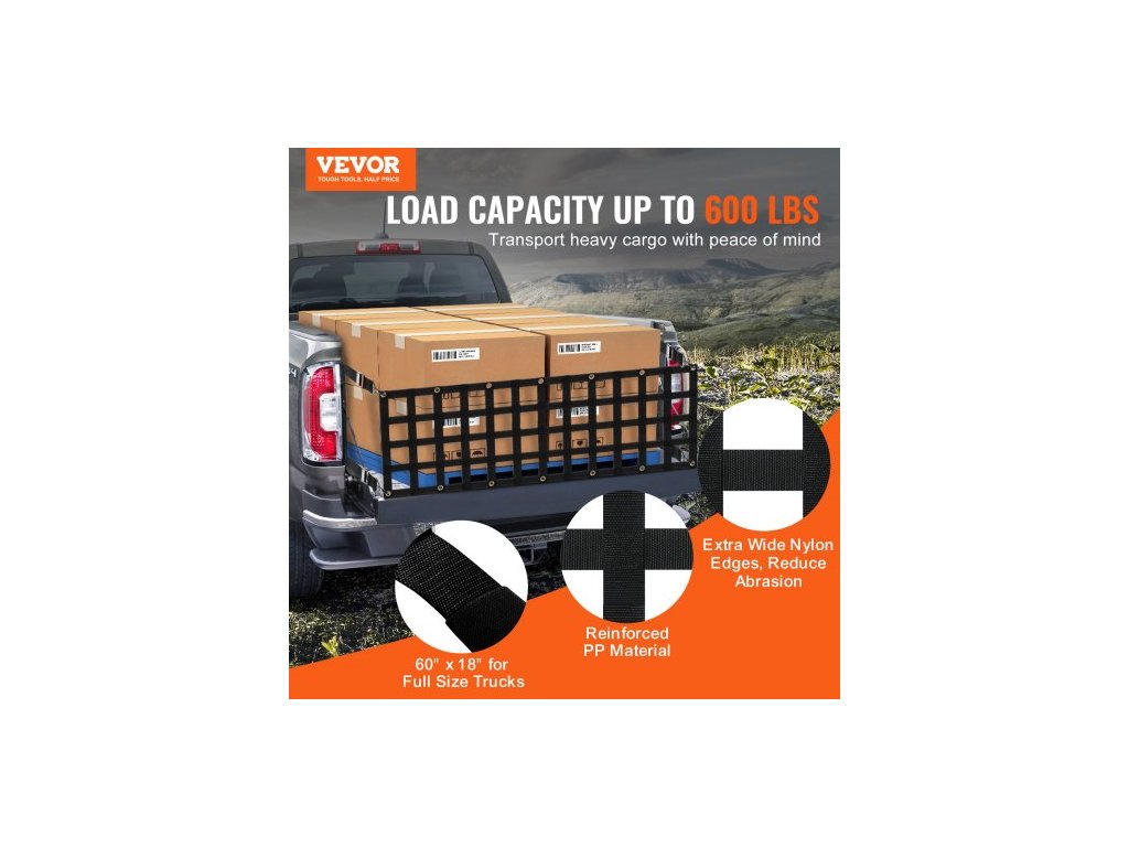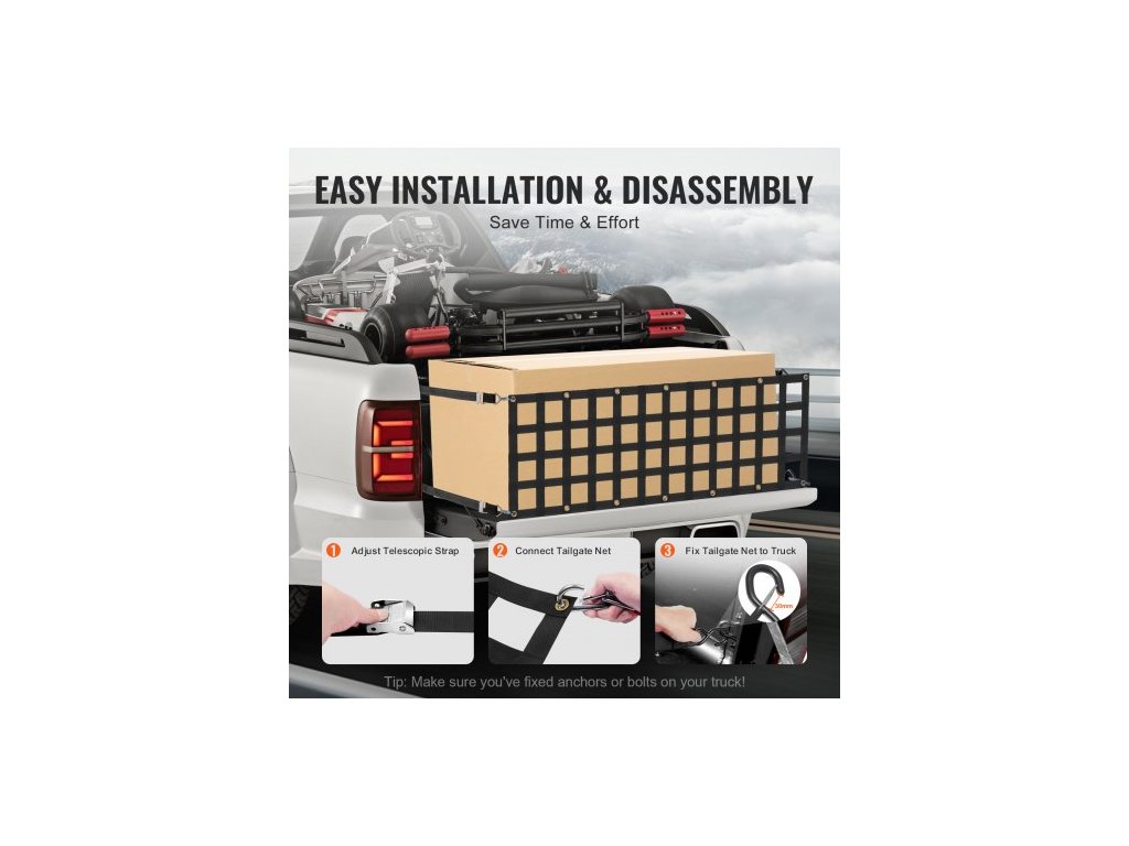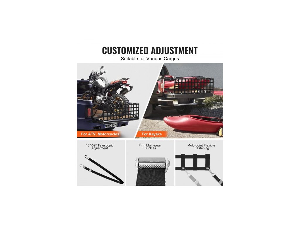Síť na zadní dveře , 60" x 18" (152 cm x 46 cm), odolná síť na korbu nákladního vozu se 4 nastavitelnými teleskopickými popruhy, rozšiřitelná a odolná, flexibilní nastavení, vhodná pro pickup, přívěs, nákladní automobil, džíp, SUV