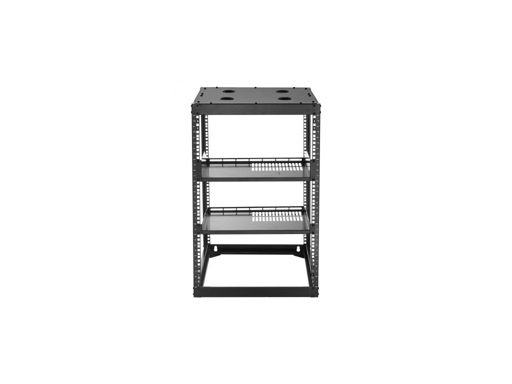 Síťový rack 16U s otevřeným rámem, hloubka 585 mm, nástěnný nebo stojící serverový rack, odolný 4sloupkový, s odvětrávanými policemi a montážním materiálem, pojme veškeré vaše síťové IT vybavení, AV zařízení.