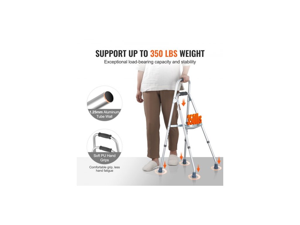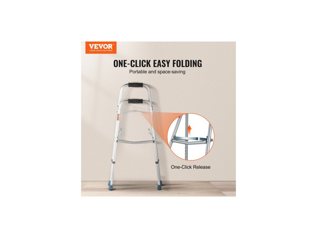 Skládací chodítko Hemi, jednoruční skládací chodítko pro seniory s 6stupňovou nastavitelnou výškou, lehké hliníkové | Boční pomůcka pro mobilitu jednou rukou pro seniory s postižením, až 157 kg