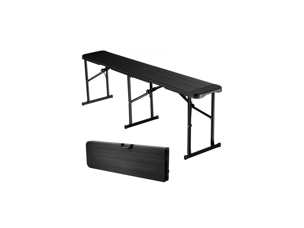 Skládací plastová lavice , přenosná lavice o délce 1,8 m pro vnitřní/venkovní piknik, párty, terasu, kempování, stolování, skládací hladké sedadlo z HDPE pro zahradní fotbal, víceúčelové zábavní aktivity, 1 balení, černá