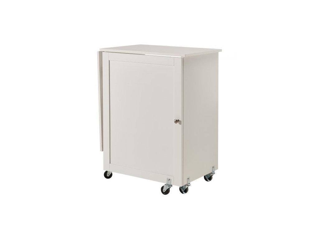 Skládací šicí stůl , víceúčelový stůl na šicí stroj s kompaktním designem, kolečky, policemi, úložnými přihrádkami, dřevěnými kolíky a magnetickými dvířky, skříňka na šicí stůl pro šicí stroj, bílá