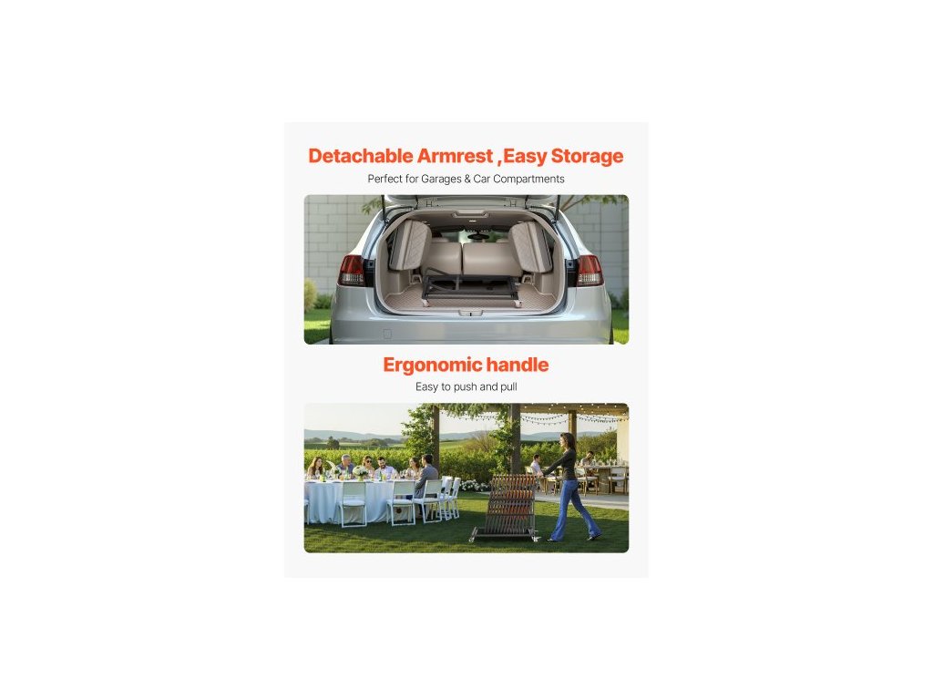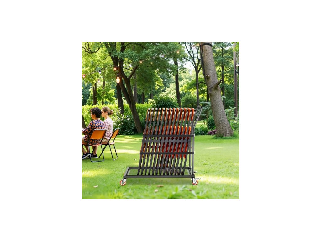 Skládací stojan na židle , nosnost 136 kg, vertikální vozík na židle ve tvaru L pro 25 židlí, odolný kovový úložný vozík na židle s gumovými kolečky, multifunkční držák na židle, matně černá