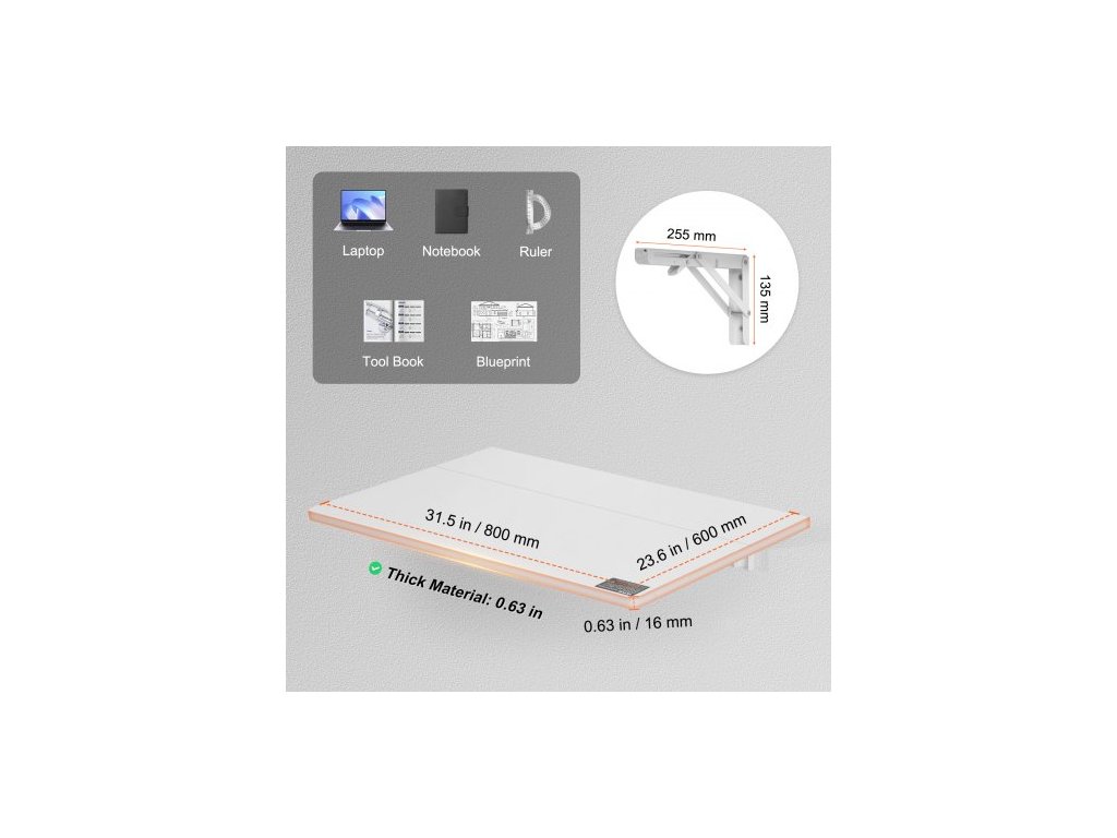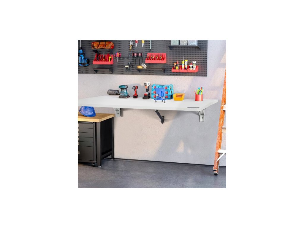 Skládací stůl k montáži na zeď, nástěnný skládací stůl s deskou 31,5" x 19,69", plovoucí stůl s železným držákem, skládací stůl pro malé prostory, domácí kancelář, jídelnu, prádelnu, kuchyň, bar, bílý