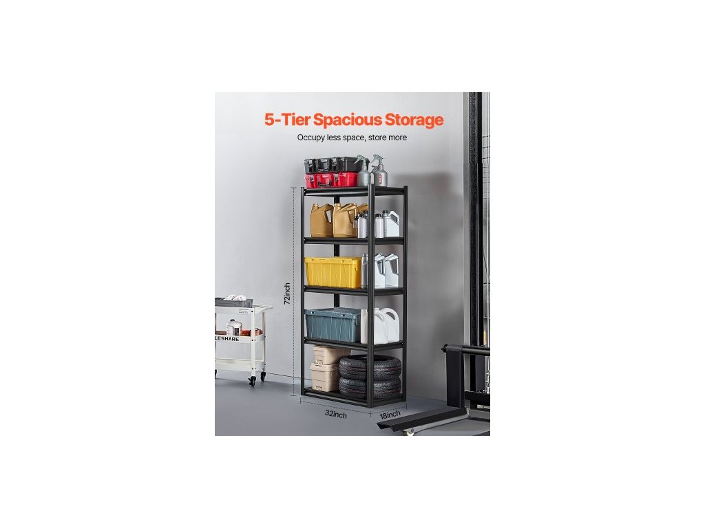 Skladovací police , 2000 lbs, 5patrové skladovací police do garáže, 18" H x 32" Š x 72" V, nastavitelné kovové police do garáže, regály na užitkové předměty, ideální do kuchyně, skladu, sklepa, černé