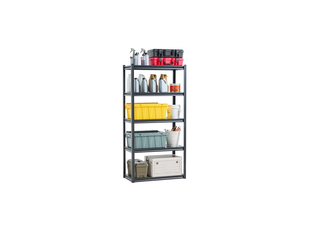 Skladovací police , 2000 lbs, 5patrové skladovací police do garáže, 18" H x 36" Š x 72" V, nastavitelné kovové police do garáže, regály na užitkové předměty, ideální do kuchyně, skladu, sklepa, černé