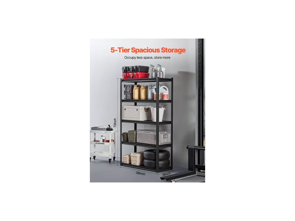 Skladovací police , 2000 lbs, 5patrové skladovací police do garáže, 18" H x 40" Š x 72" V, nastavitelné kovové police do garáže, regály na užitkové předměty, ideální do kuchyně, skladu, sklepa, černé