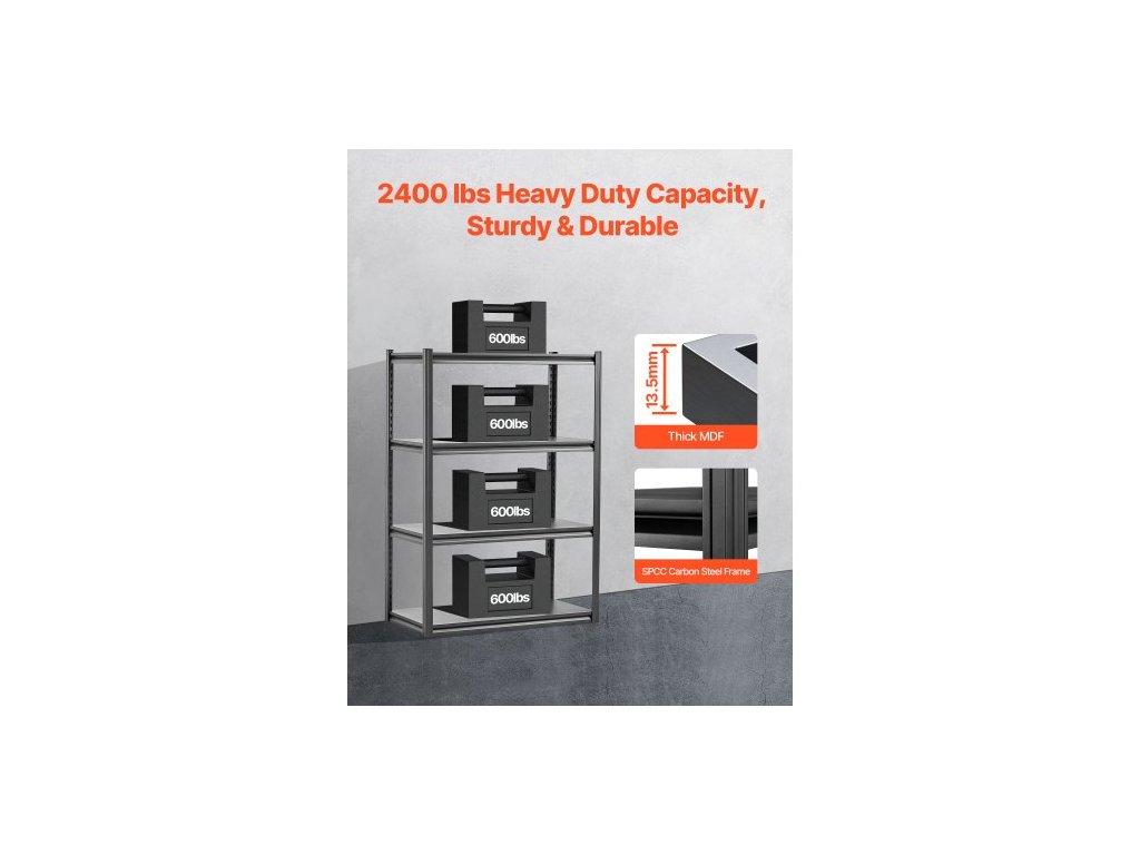 Skladovací police , 2400 liber, 4patrové garážové skladovací police, 20" H x 40" Š x 57" V, nastavitelné kovové police do garáže, úložný regál, ideální do kuchyně, skladu, sklepa, černé