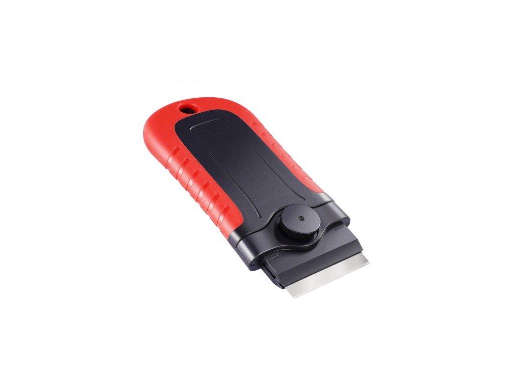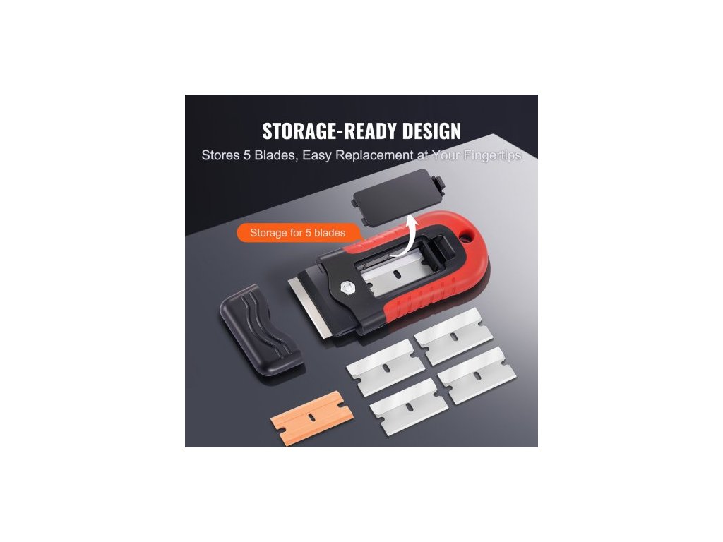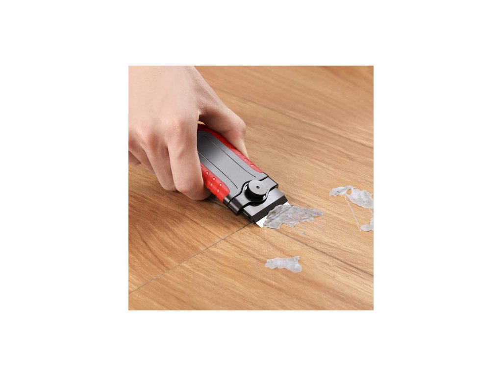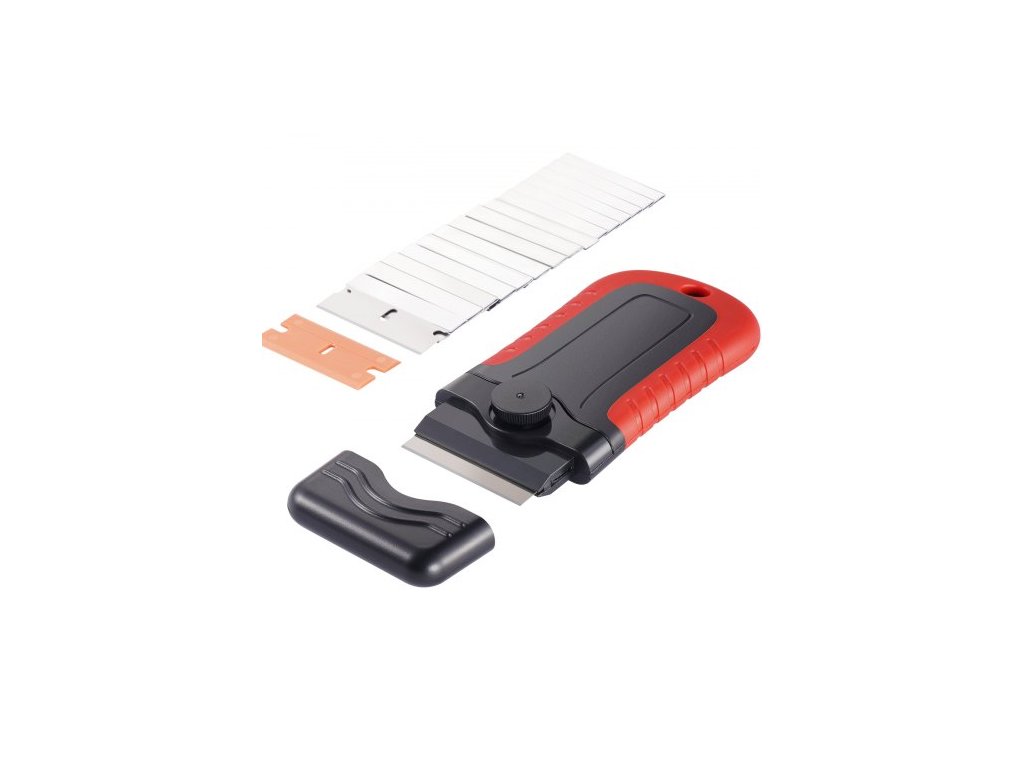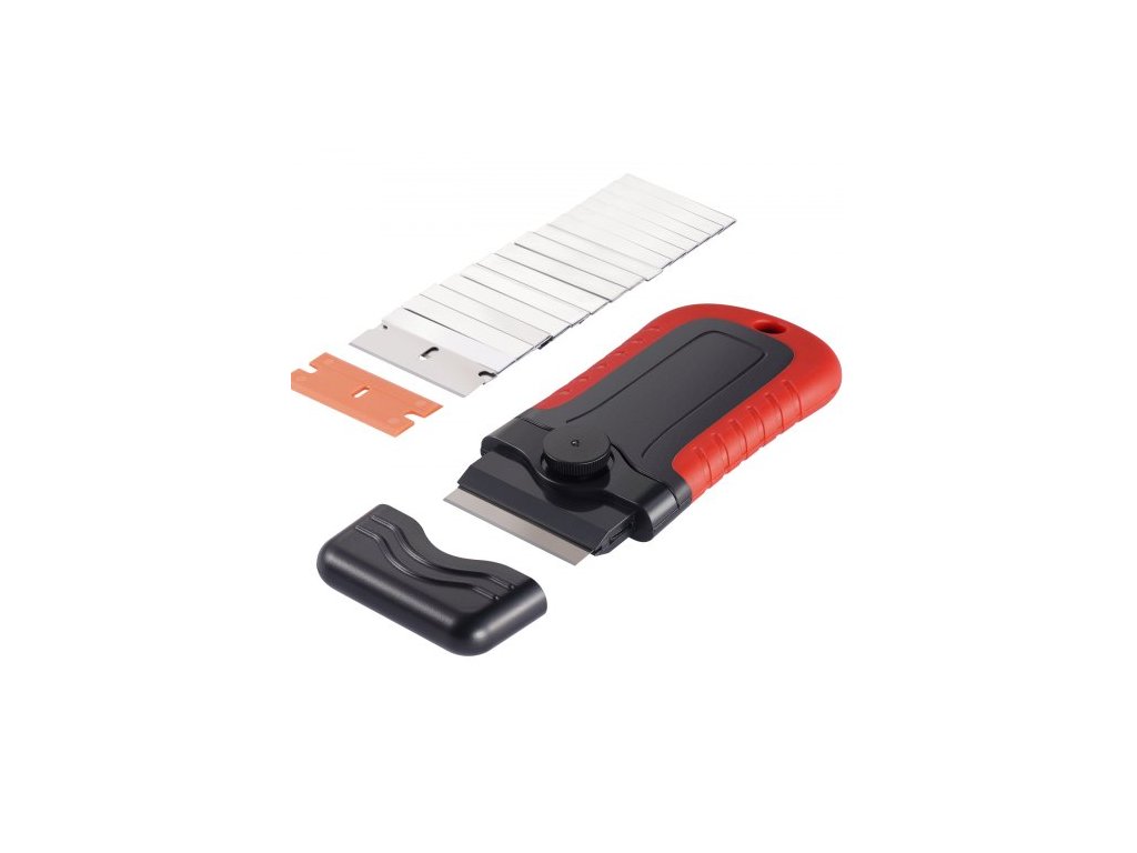 škrabka na žiletku, 15 náhradních čepelí, uzamykatelný škrabák s bezpečnostním krytem, čepele z uhlíkové oceli a POM, pro čištění štítků, samolepek, obtisků a barvy ze skla, oken, sporáku, trouby