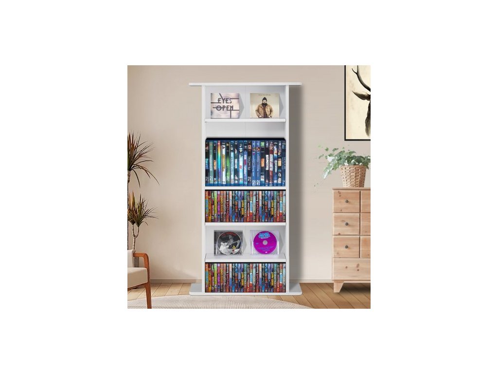 Skříň na média , 5vrstvá police na DVD, pojme až 240 CD, nastavitelné police na CD, chrání a organizuje hudební, filmové, videohry nebo sbírky memorabilií, bílá