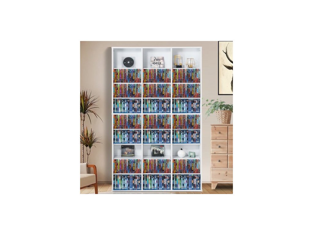 Skříň na média , 9vrstvá DVD police pojme až 756 CD, nastavitelné police na CD, 27 přihrádek, chrání a organizuje hudební, filmové, videohry nebo sbírky memorabilií, bílá