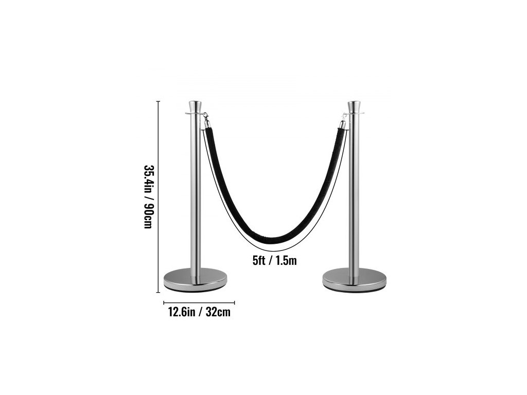 Celková výška: (přibližně) 90 cm, průměr základny: 32 cm, materiál lana: flanel, model: VV-SS-SBLR2HGT, materiál sloupku: nerezová ocel, tloušťka stěny tyče: 0,8 mm, základna: kovový rám, hmotnost položky: 13 kg, délka lana: 1,5 m, barva lana: černá