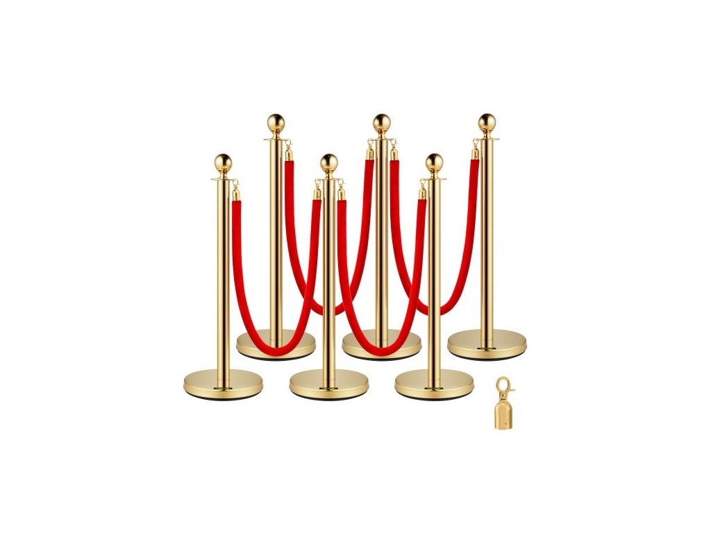 Celková výška: 37,4 palce / 95 cm,Průměr základny: 12,6 palce / 32 cm,Materiál lana: Samet,Model: Zlaté sloupky 6 ks,Materiál sloupu: Nerezová ocel, slitina zinku,Hmotnost položky: 29 liber / 13 kg,Průměr trubky: 2 palce / 5,1 cm,Délka lana: 5 stop / 1,5 m,Barva lana: Červená