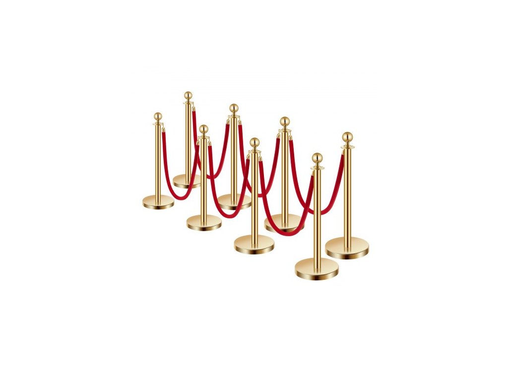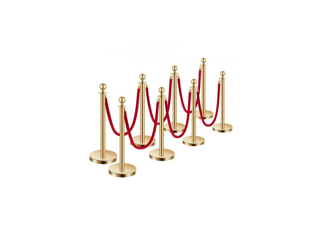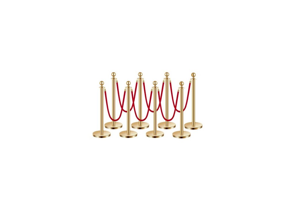 sloupky, sada 8 kusů pro regulaci davu s 6 červenými sametovými lany, fronta z nerezové oceli o délce 5 stop (1,5 m) zlatých sloupků s dutou základnou pro vstřikování písku pro divadlo, večírek, svatbu, výstavu