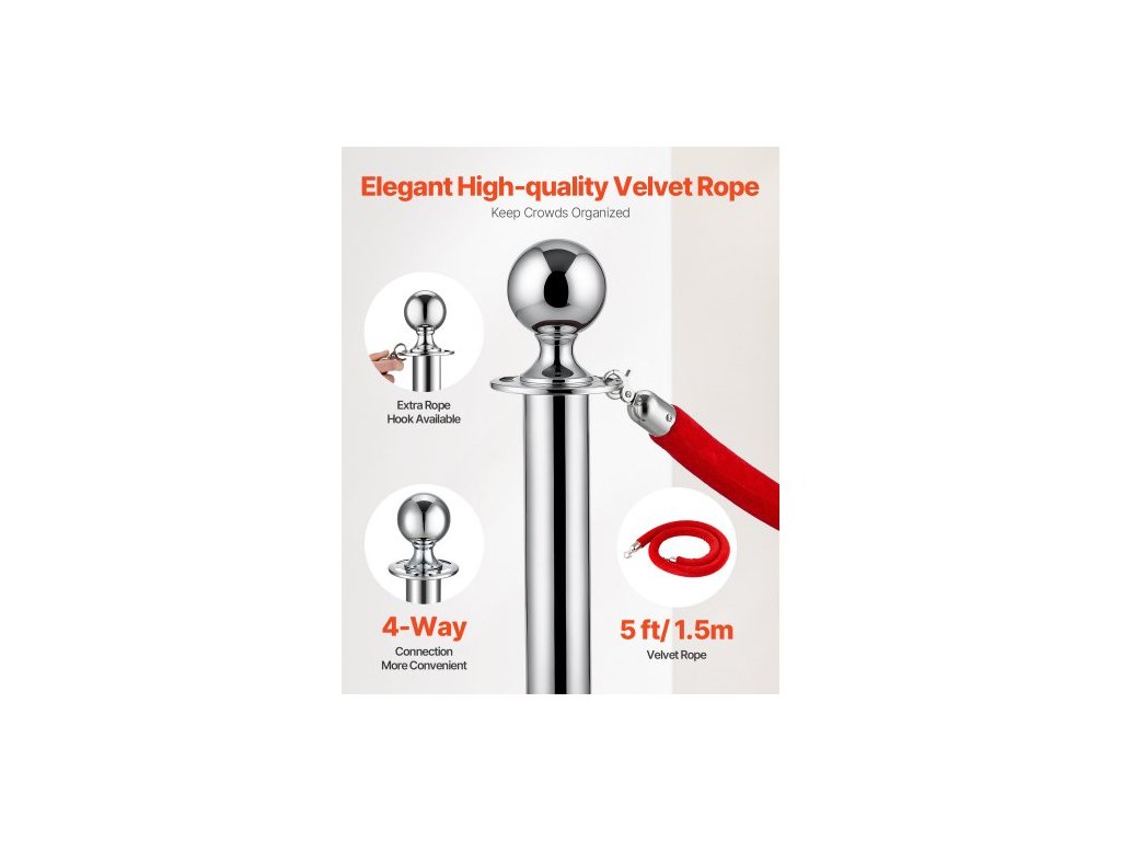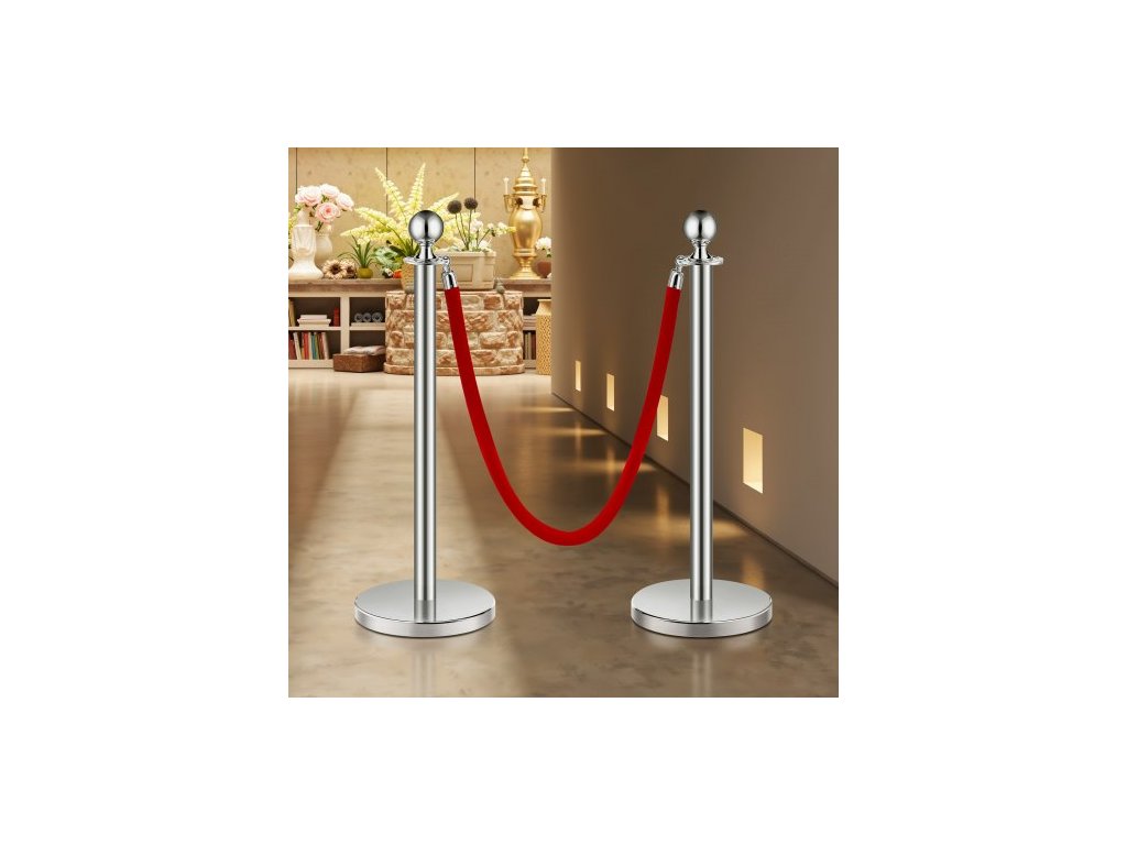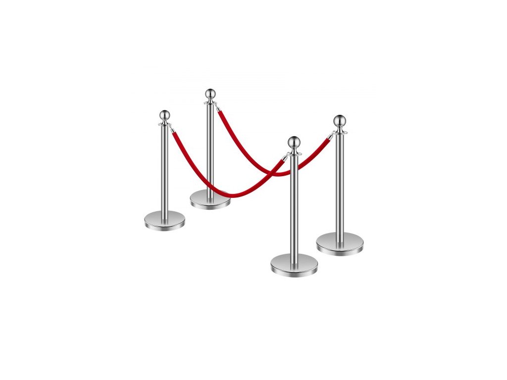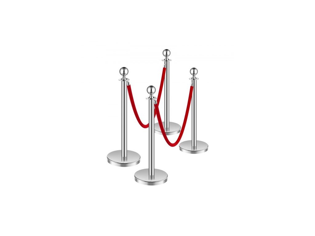 Sloupky, sada 4 ks pro regulaci davu se 2 červenými sametovými lany, fronta z nerezové oceli o délce 5 stop (1,5 m) se stříbrnou základnou z duté pískové vstřikovací hmoty pro divadlo, večírek, svatbu, výstavu