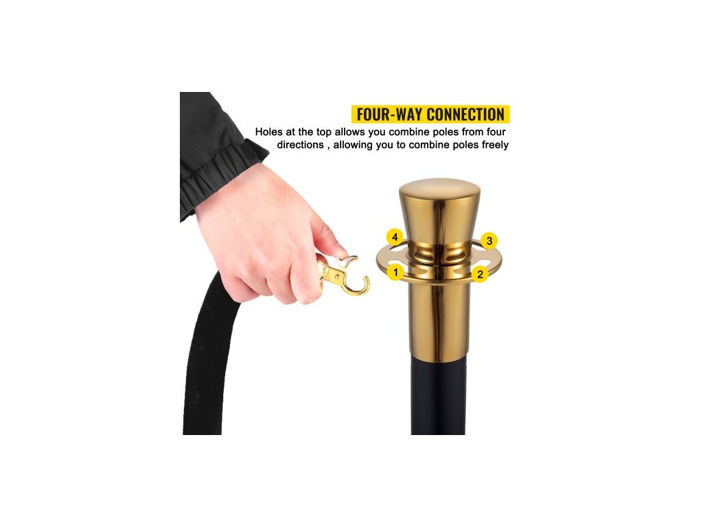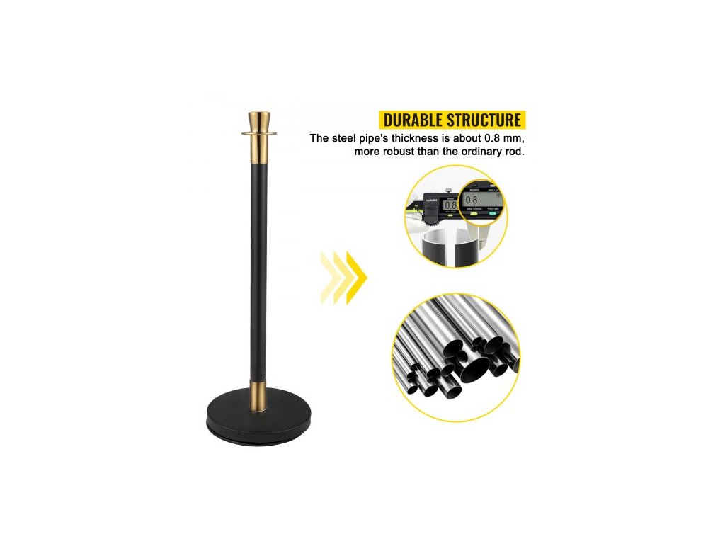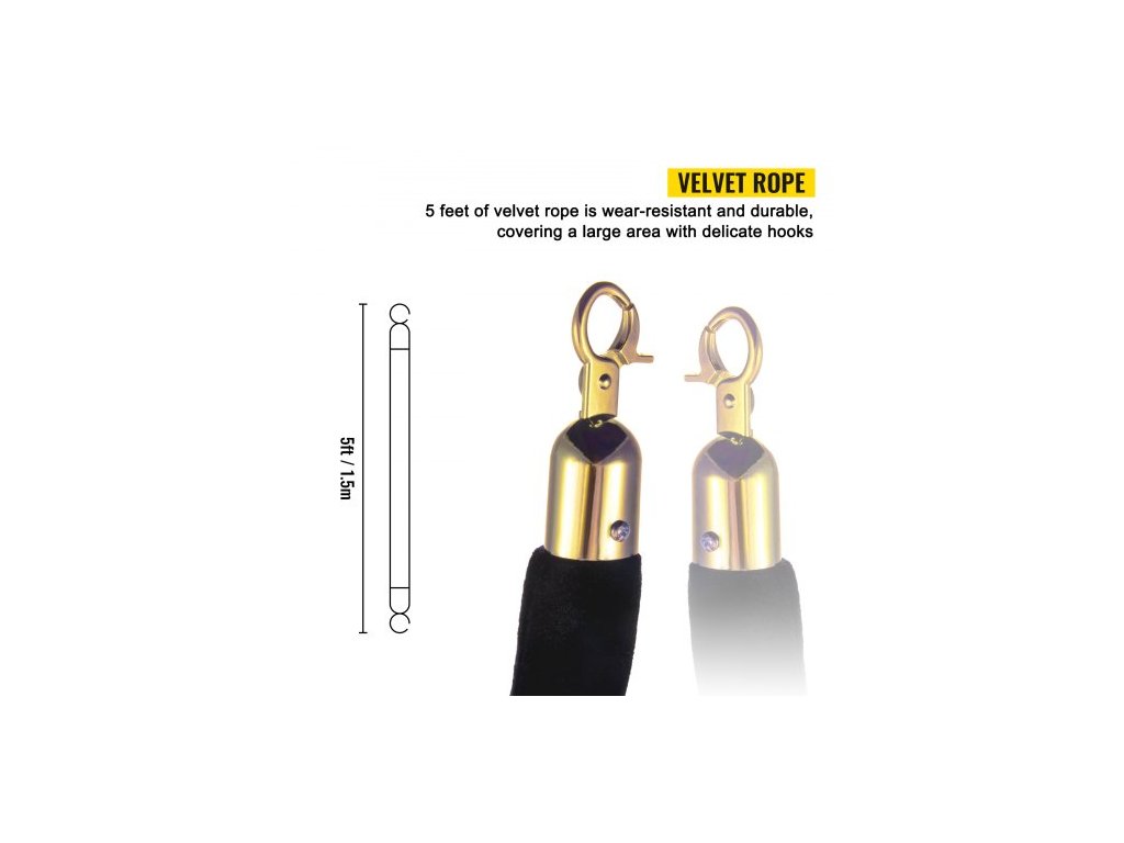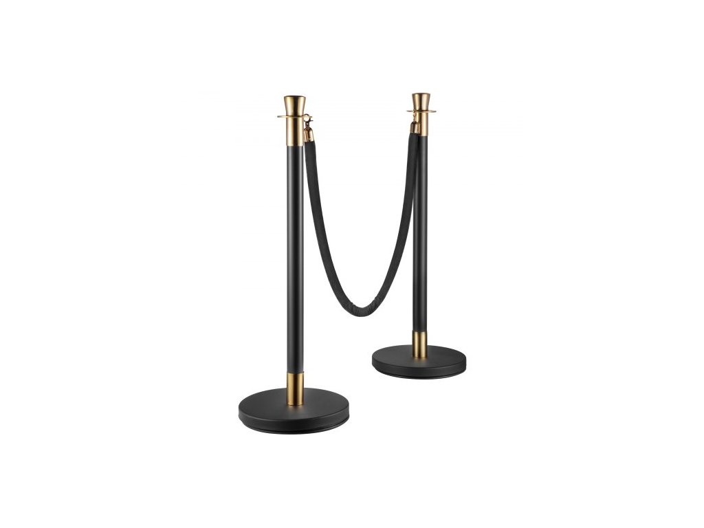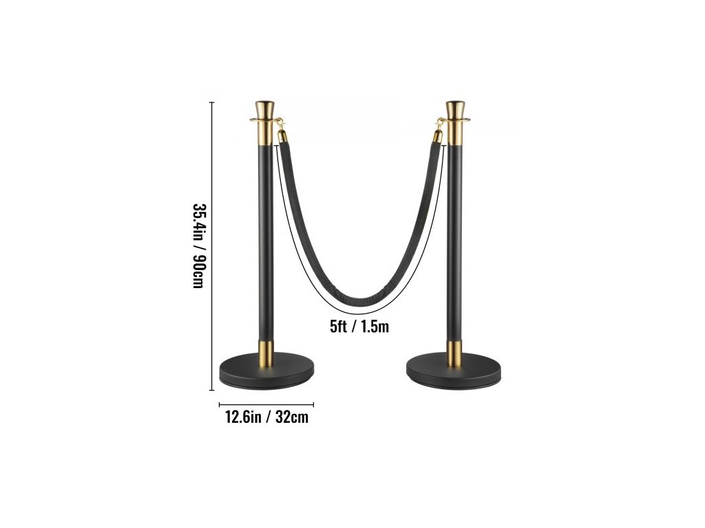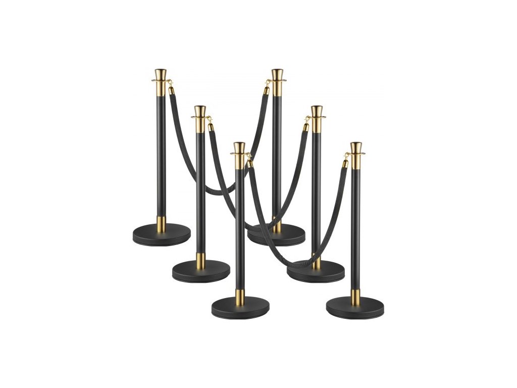 Sloupek pro regulaci davu, sada 6 kusů, sada sloupků s černým sametovým lanem o délce 1,5 m, černá zábrana pro regulaci davu s pevnou betonovou a kovovou základnou – snadná montáž