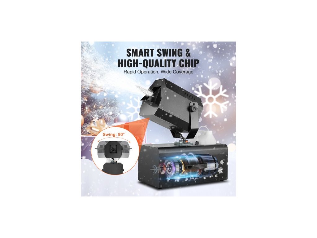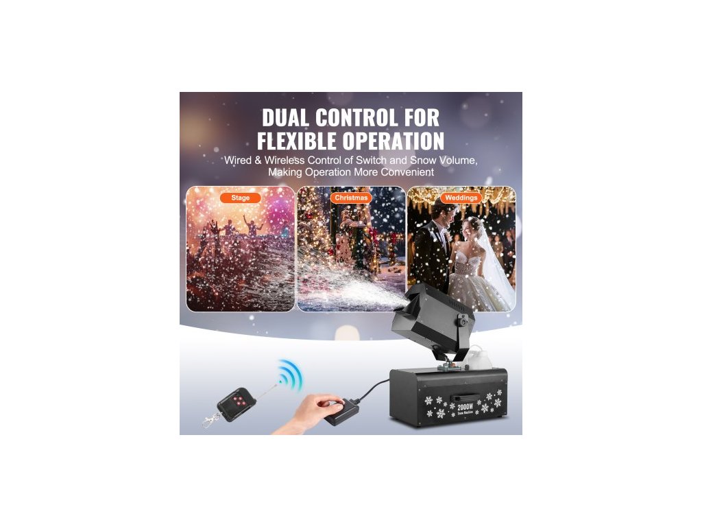 Sněhový stroj, 2000 W, houpací sněhový stroj s 5l nádrží, drátový a bezdrátový dálkově ovládaný výrobník sněhových vloček, vysoce výkonný vnitřní umělý sněhový stroj pro vánoční večírky, svatební pódiové efekty