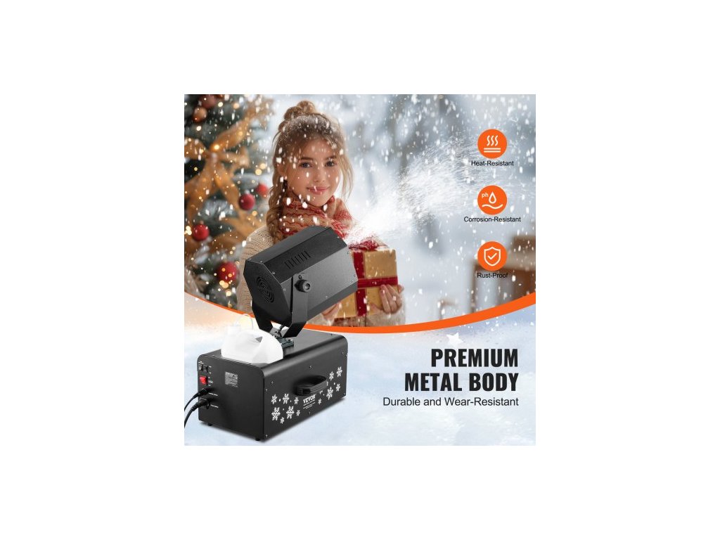 Sněhový stroj, 2000 W, houpavý sněhový stroj s 5l nádrží, drátový a bezdrátový dálkový ovladač, výrobník sněhových vloček, vysoce výkonný vnitřní umělý sněhový stroj pro vánoční večírky, svatební pódiové efekty