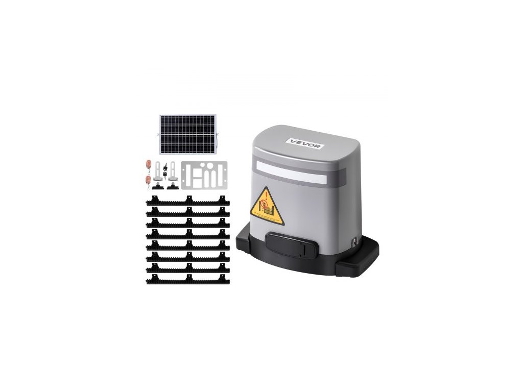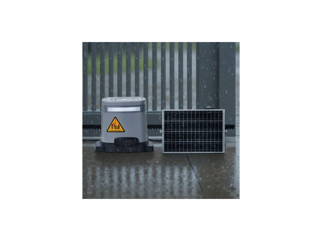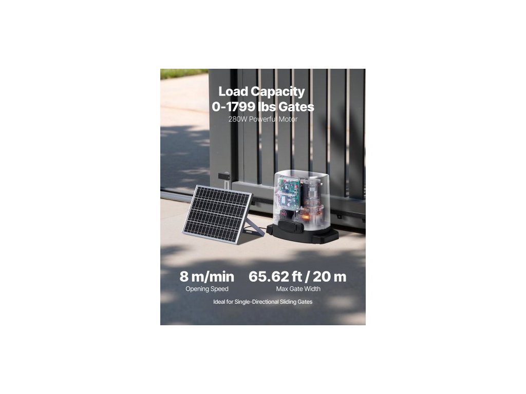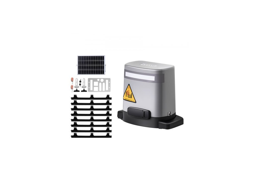 Solární pohon posuvných bran , elektrický pohon bran 280 W pro brány do 20 m, 816 kg, motor pro rolovací plot s převodovkou, infračerveným senzorem a 2 dálkovými ovladači, systém otevírání bran příjezdové cesty