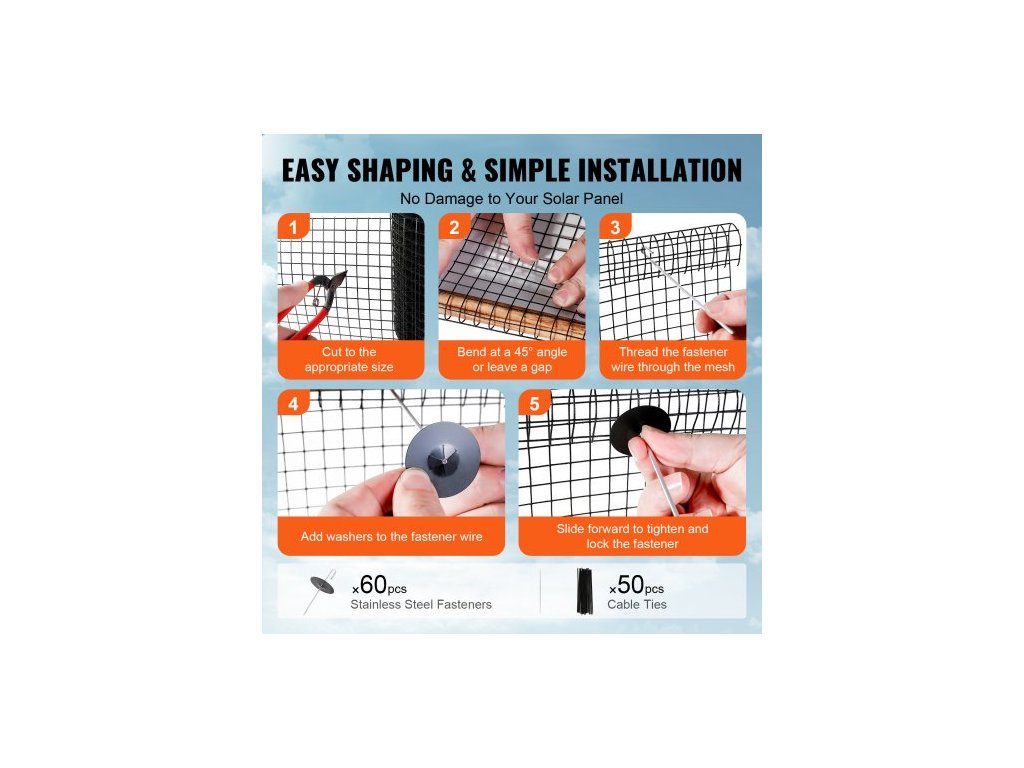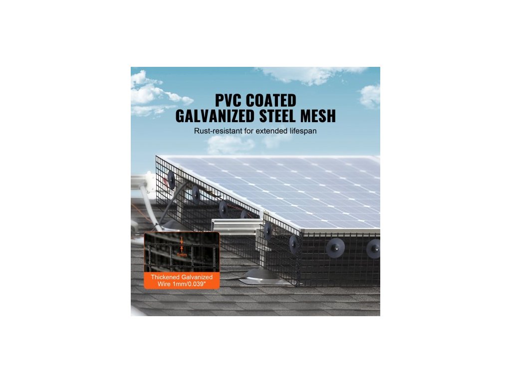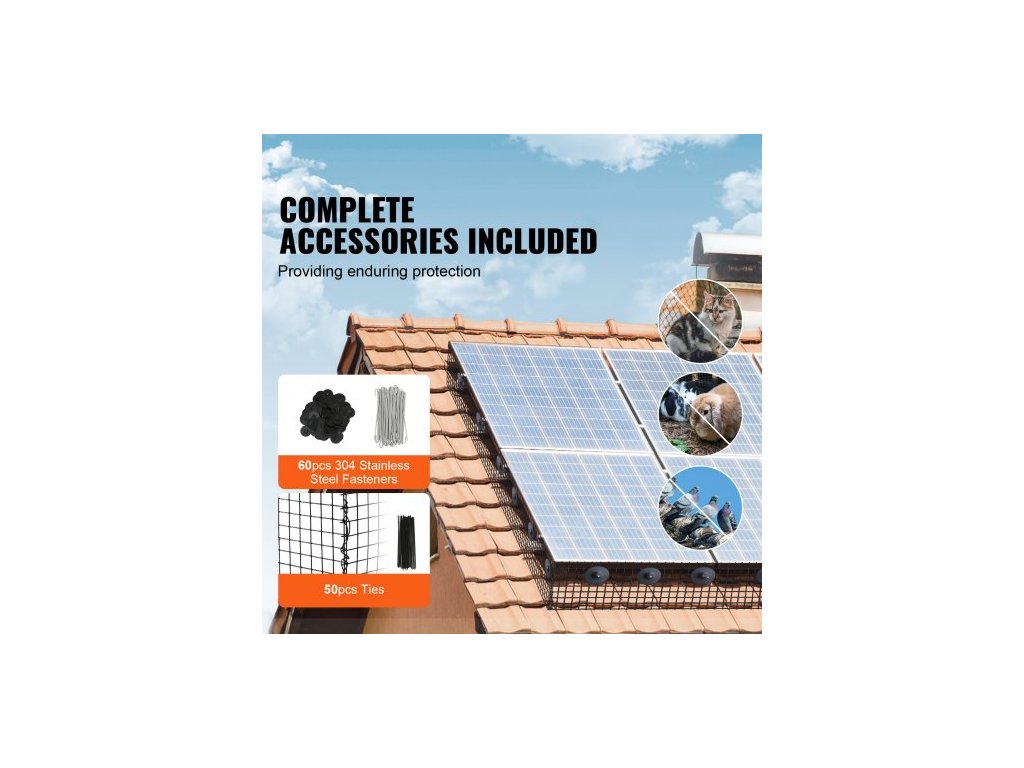 Solární panel s ochranou proti ptákům 15,24 x 3048 cm, sada ochranných rolí proti hmyzu s 60 ks hliníkových spojovacích prvků, ochrana solárního panelu s nerezovým PVC povlakem, drátěné pletivo o průměru 12,7 mm