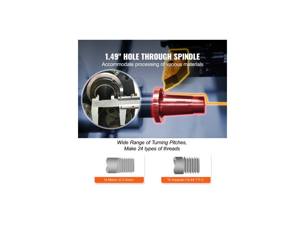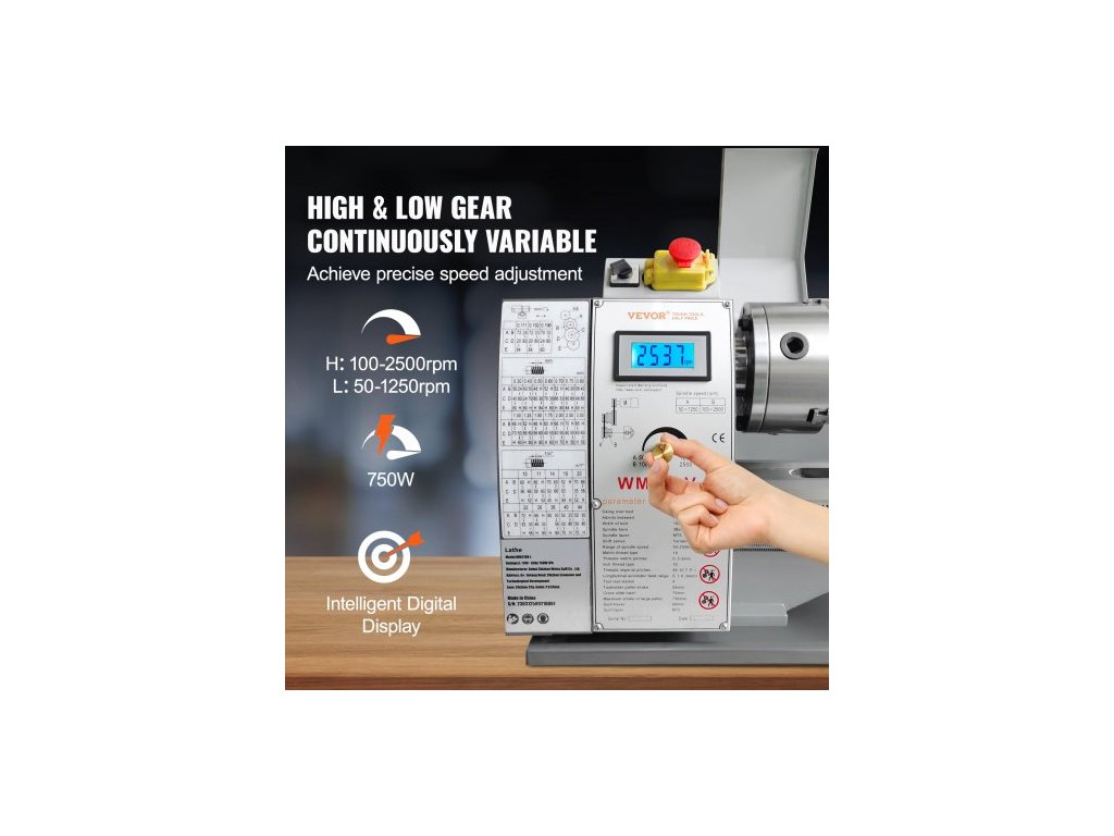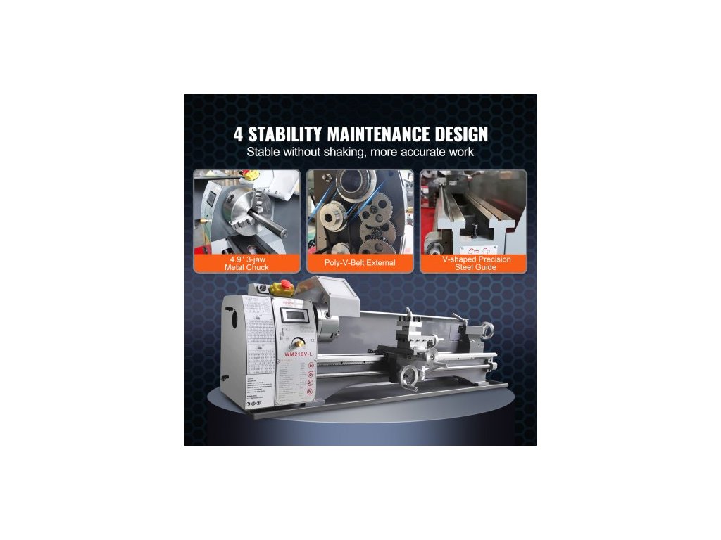 Otáčky vřetena: 50–2500 ot./min., Kužel koníku: MK2, Průměr vřetena skrz otvor: 38 mm / 1,49 palce, Napětí: 220 V, 50 Hz, Model: WM210V-L, Výkon motoru: 750 W, Průměr sklíčidla: 125 mm / 4,9 palce, Kužel vřetena: MK5, Rozměry výrobku (D x Š x V): 1200 x 340 x 360 mm / 47,2 x 13,4 x 14,2 palce, Životnost: 3 roky, Čistá hmotnost: 79 kg / 174 liber, Hlavní materiál: Litina HT200