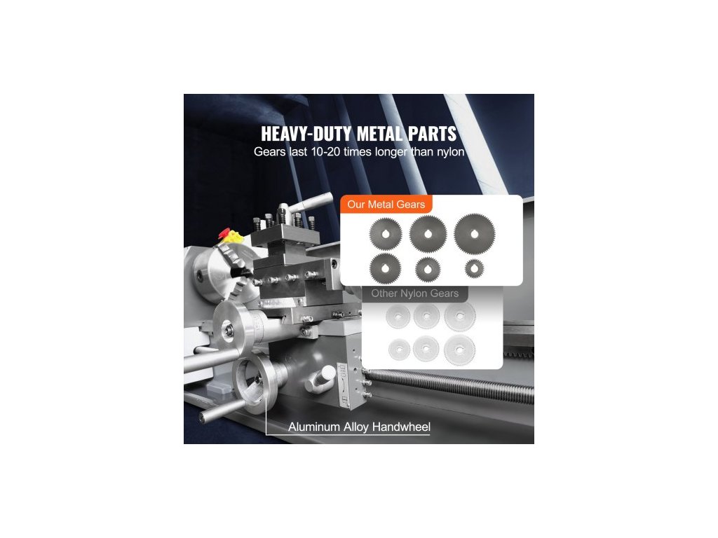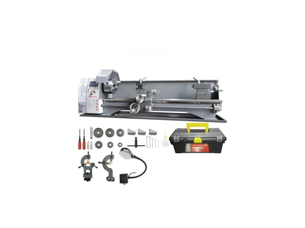 Soustruh na kov , 21,1 cm x 75 cm, Přesný stolní soustruh na kov, 0–2500 ot./min. Plynule nastavitelná rychlost, 750W bezkartáčový motor s kovovými převody, s bednou na nářadí pro zpracování přesných dílů