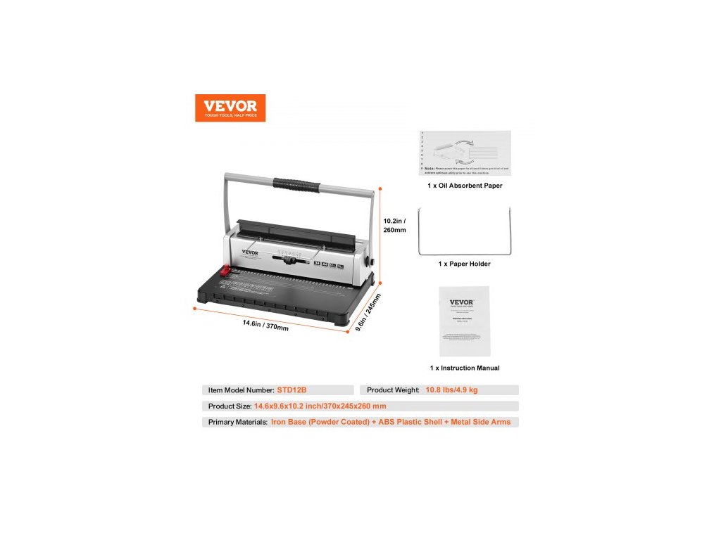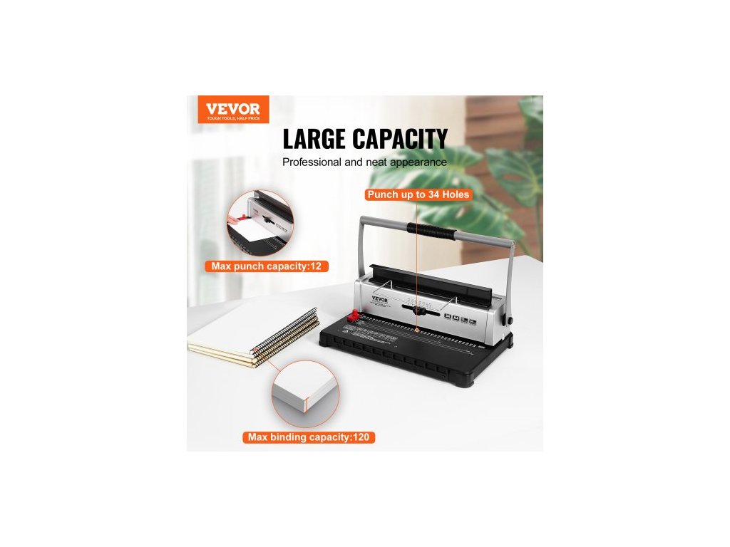Spirálová vazba , manuální vázací stroj na knihy, 34děrová vazba, 120 listů, děrovací vazba s nastavitelnými hřbety a bočním okrajem pro vazbu 3/16" - 9/16", pro formát Letter, A4, A5