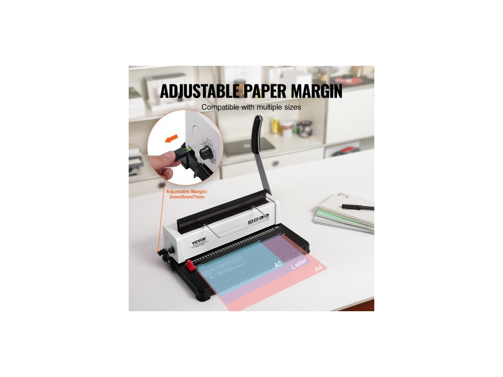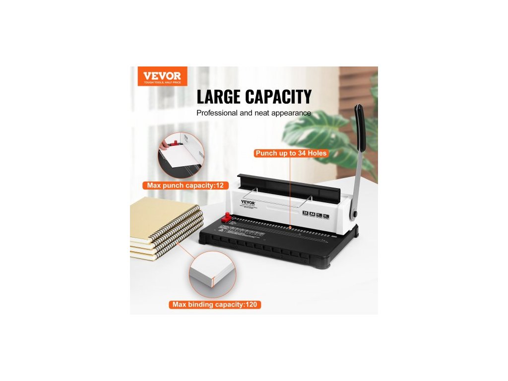 Spirálová vazba , manuální vázací stroj na knihy, 34děrová vazba, 120 listů, nastavitelná děrovací vazba, hřbety spirálových vazby 4,76 mm - 14,29 mm, pro formáty Letter, A4, A5.