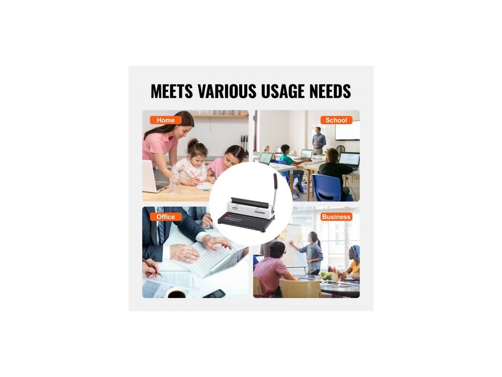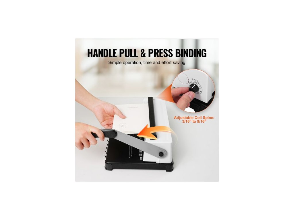 Spirálová vazba , manuální vázací stroj na knihy, 34děrová vazba, 120 listů, nastavitelná děrovací vazba, hřbety spirálové vazby 4,76 mm - 14,29 mm, pro formáty Letter, A4, A5.