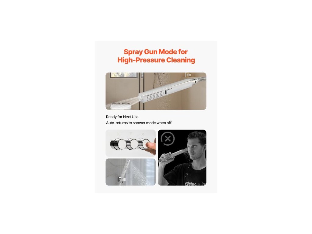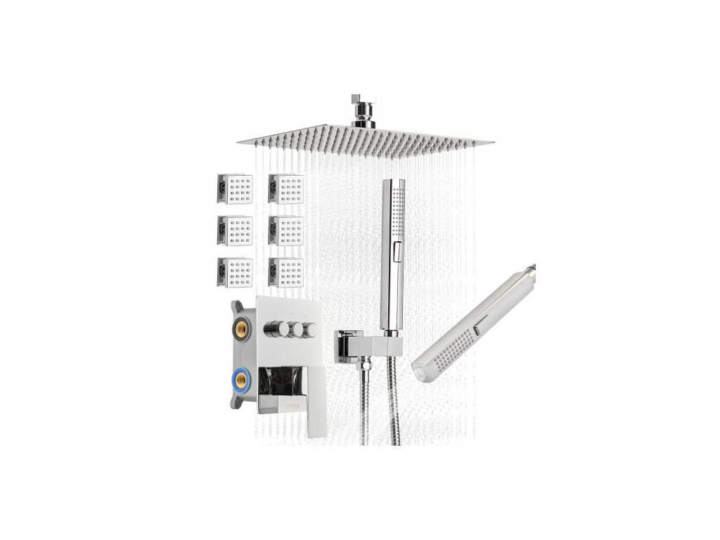 Sprchová baterie , stropní sprchový systém Dešťová sprcha 254 mm s 6 tryskami a ruční sprchou 2 v 1, otočná 3funkční sada dešťové hlavice, kompletní mosazný ventil a sada armatur, chrom