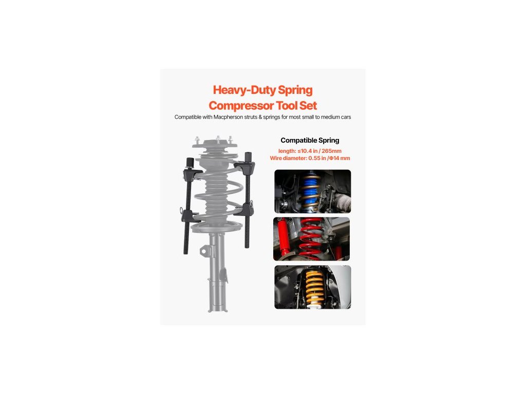 Stahovač pružin, sada 2 kusů, Vysoce odolný nástroj na stahování vinutých pružin s rozsahem 10,4 palce (256 mm), kompatibilní s šestihrannými nástrčnými klíči 0,86 palce (22 mm), vhodný pro osobní automobily, nákladní automobily a motocykly, černý