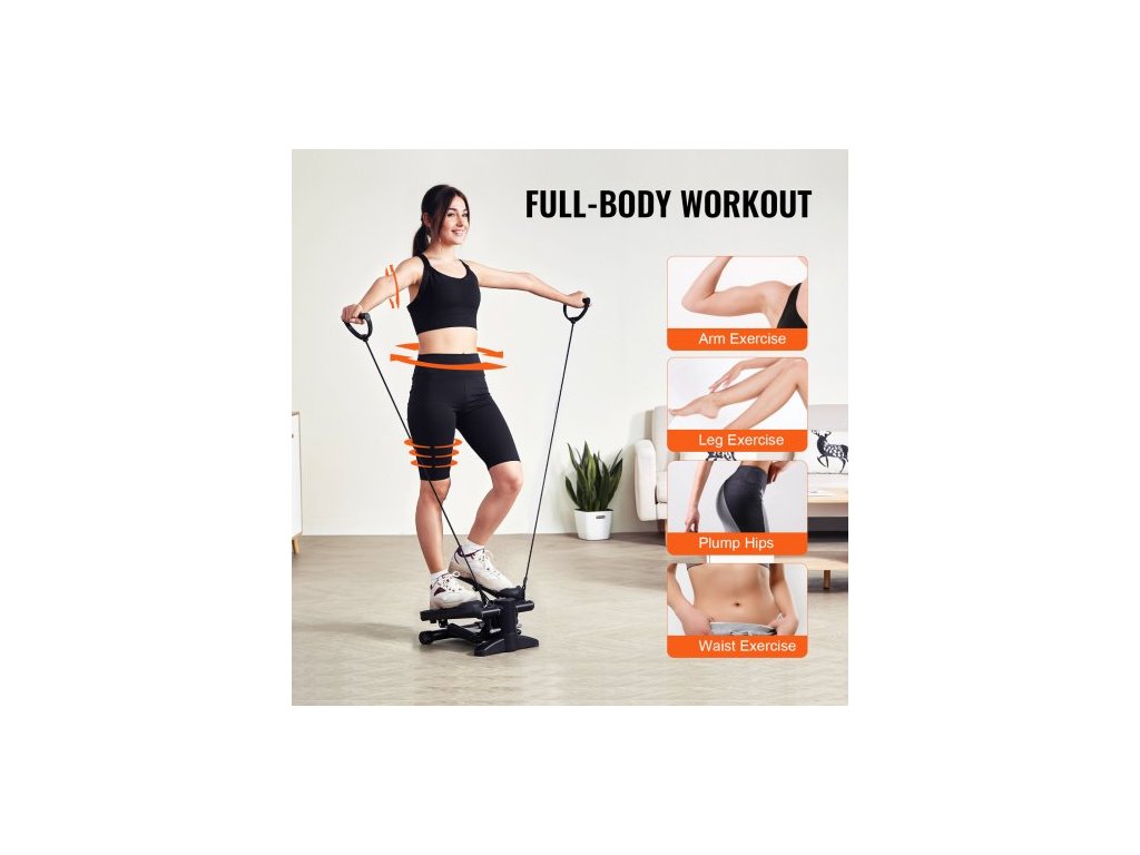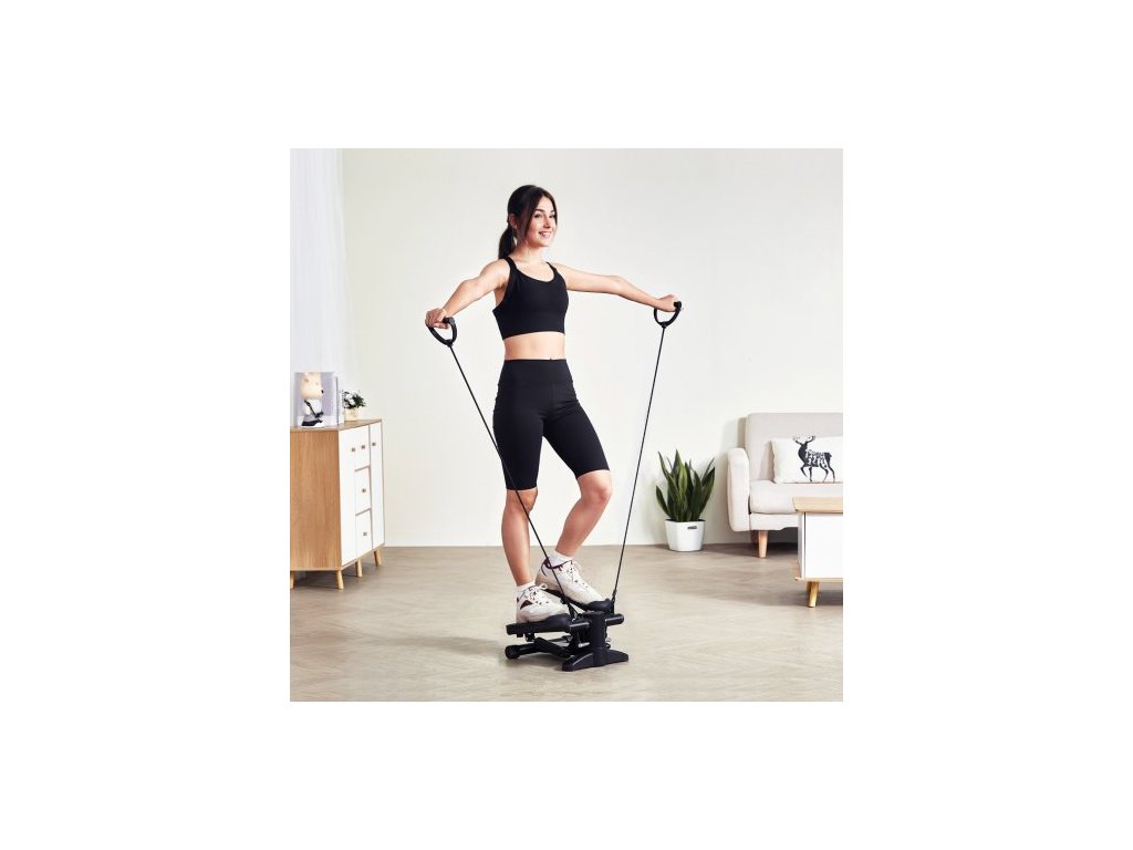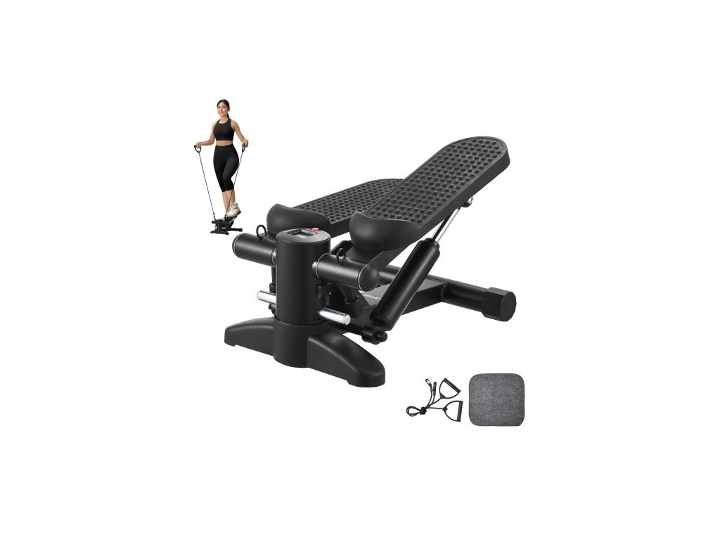 Stair Stepper, mini stepper pro cvičení doma, hydraulický fitness stepper s odporovými pásy, kardio zařízení pro cvičení celého těla, schodolez s LCD monitorem, nosnost 150 kg