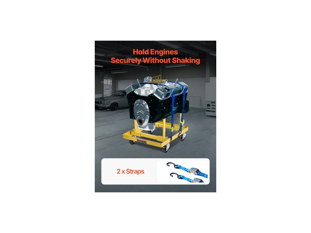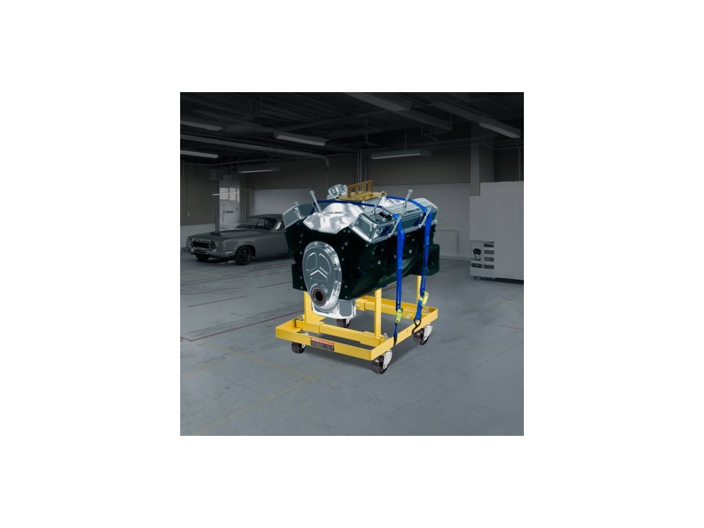 Stojan motoru , nosnost 750 liber (340 kg) Stojan motoru s nastavitelnou šířkou a délkou, odolný ocelový držák motoru se 4 otočnými kolečky a 2 ráčnami, vhodný pro většinu motorů