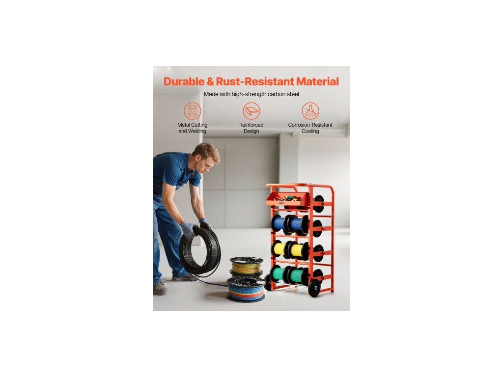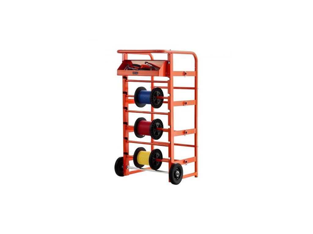 Stojan na cívky drátu , 11 tyčí, Dávkovač vícecívkových stojanů na dráty, Držák kabelů s kolečky, Držák kabelů s úložným prostorem pro uložení kabeláže, pro elektrické, průmyslové a maloobchodní použití, Pracovní efektivita