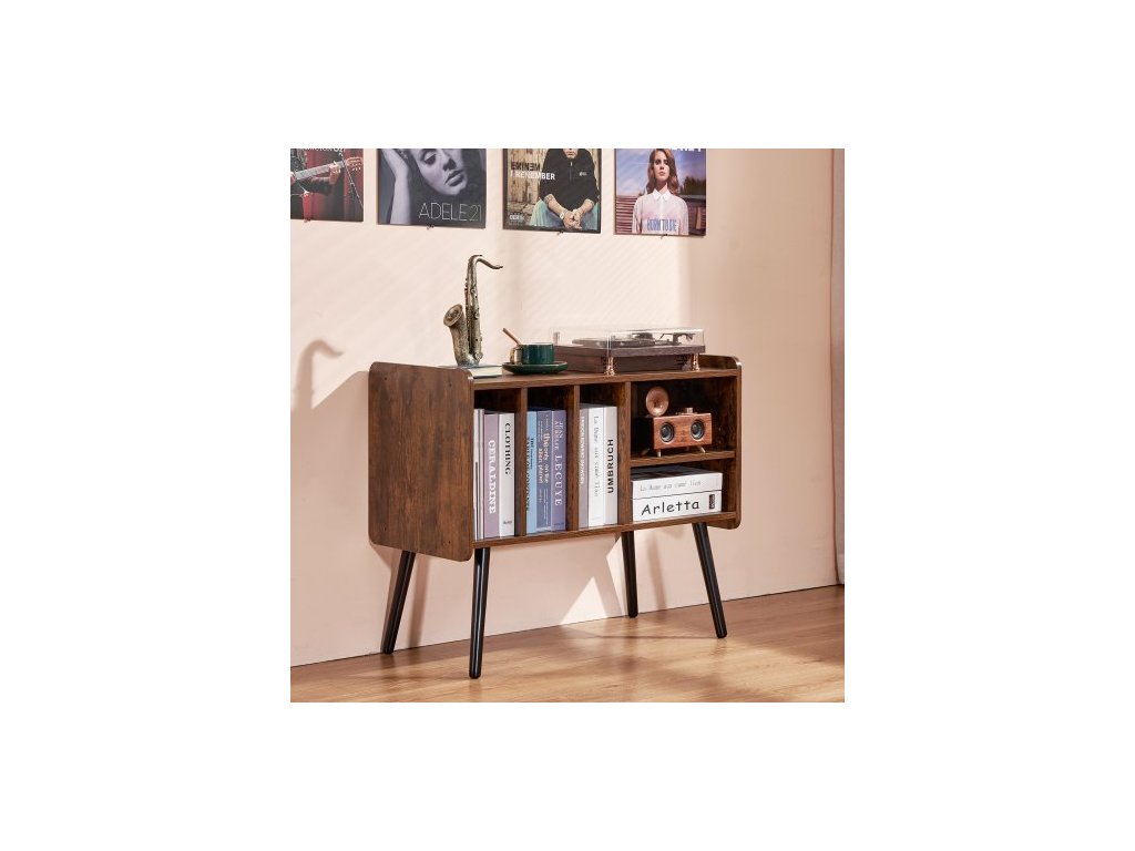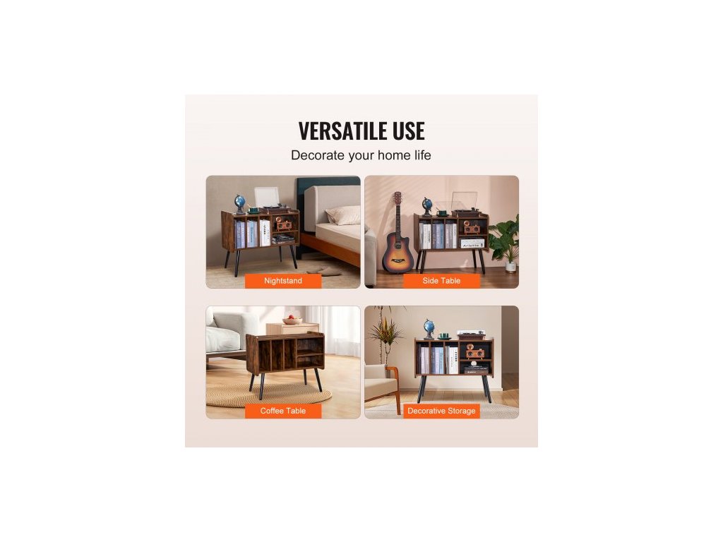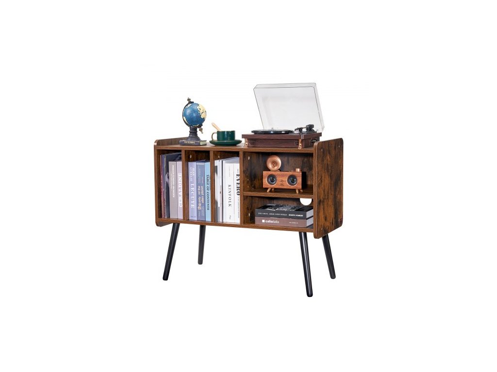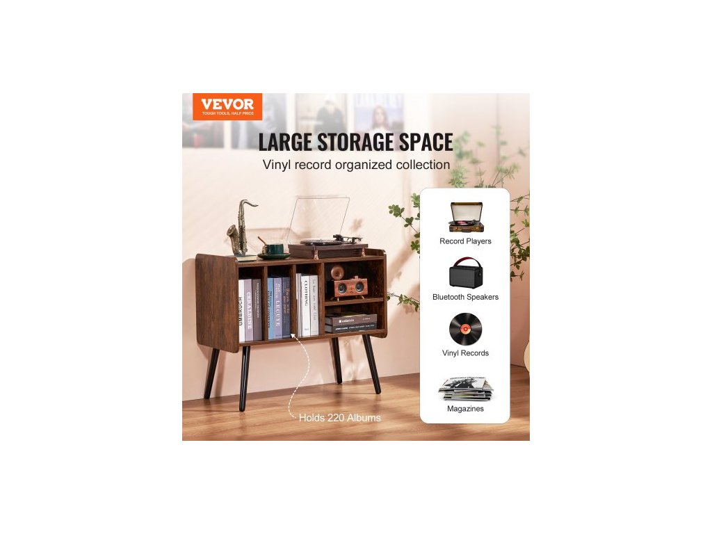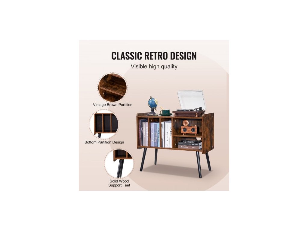 Stojan na gramofon , stojan na gramofon pojme až 220 alb, vintage skříňka na vinylové desky s odnímatelnými policemi, stolek na gramofon s nastavitelnou výškou do obývacího pokoje, ložnice, hnědý