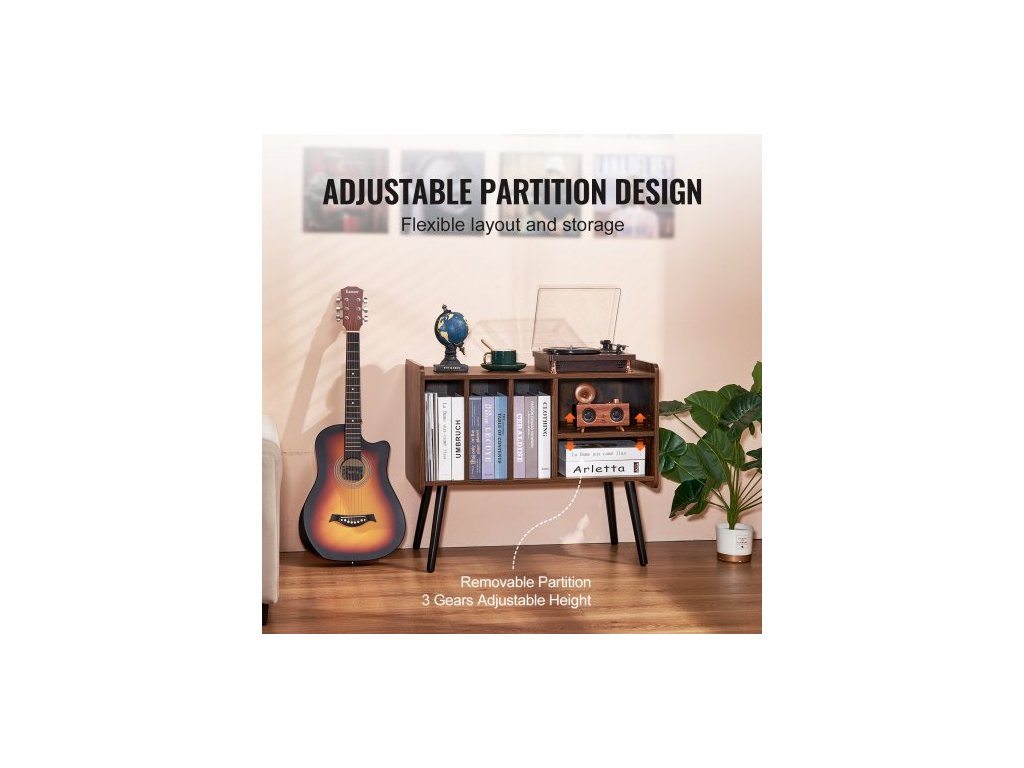 Stojan na gramofon , stojan na gramofon s kapacitou až 220 alb, vintage skříňka na vinylové desky s odnímatelnými policemi, stolek na gramofon s nastavitelnou výškou do obývacího pokoje, ložnice, hnědý