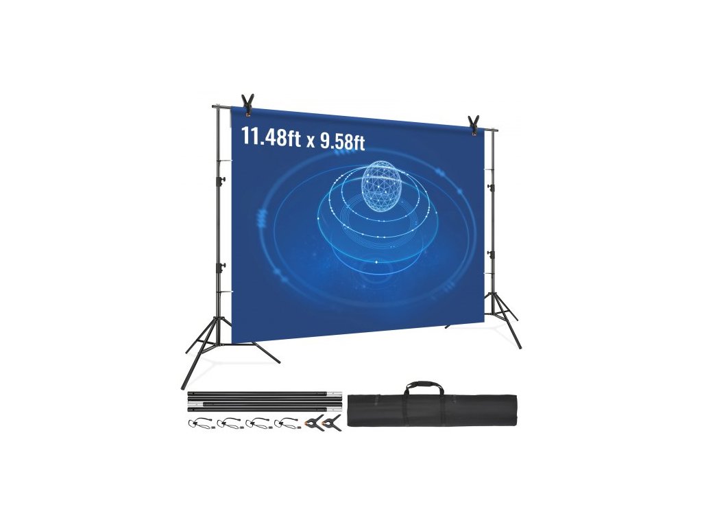 Stojan na pozadí 365,7 x 304,8 cm pro vysokou životnost, výškově nastavitelný stojan na fotografické pozadí, systém podpory pozadí se 6 svorkami a přepravní taškou, pro večírky, svatby, vystavení, focení