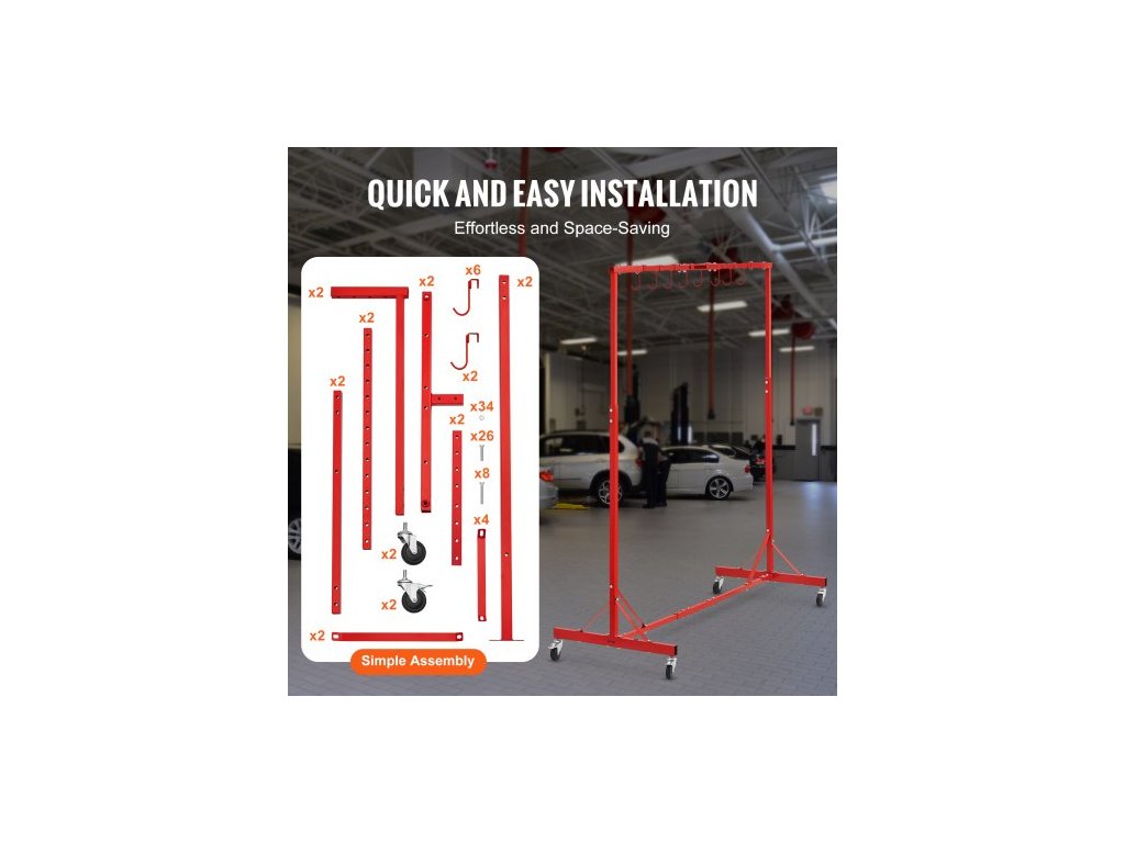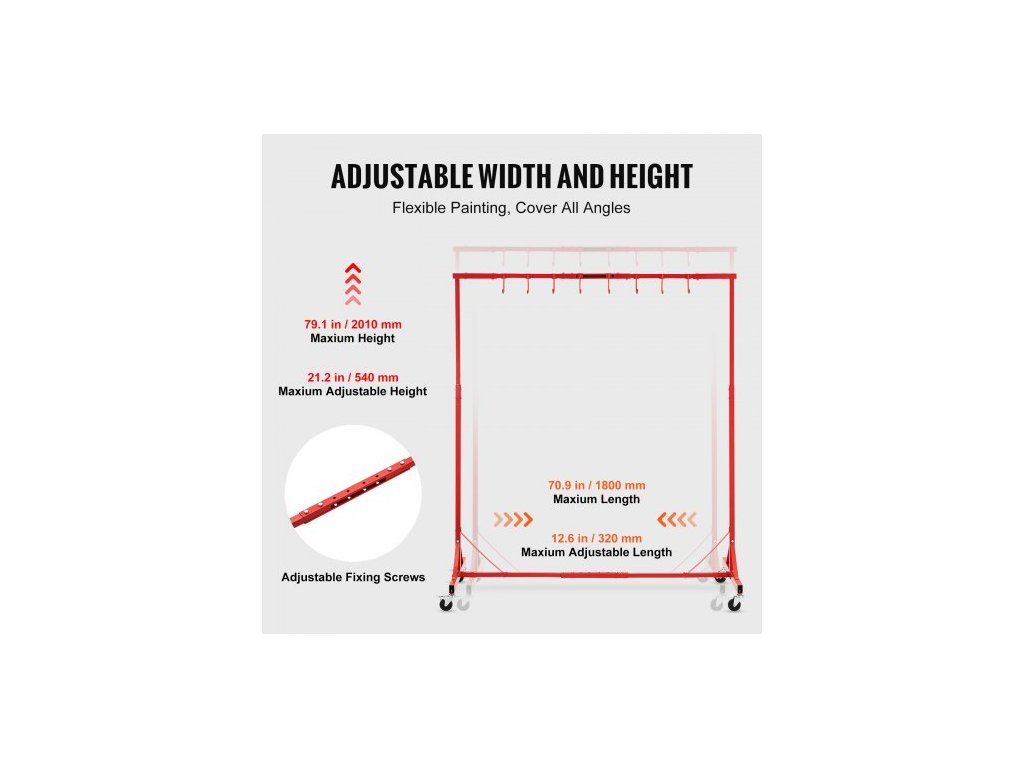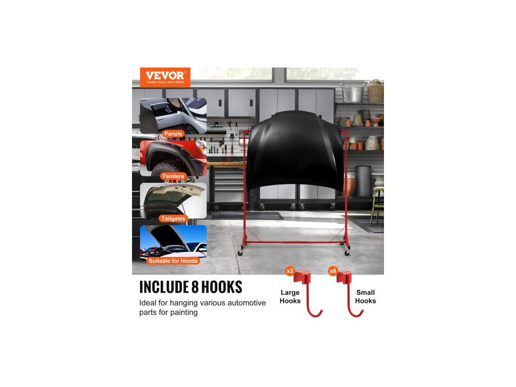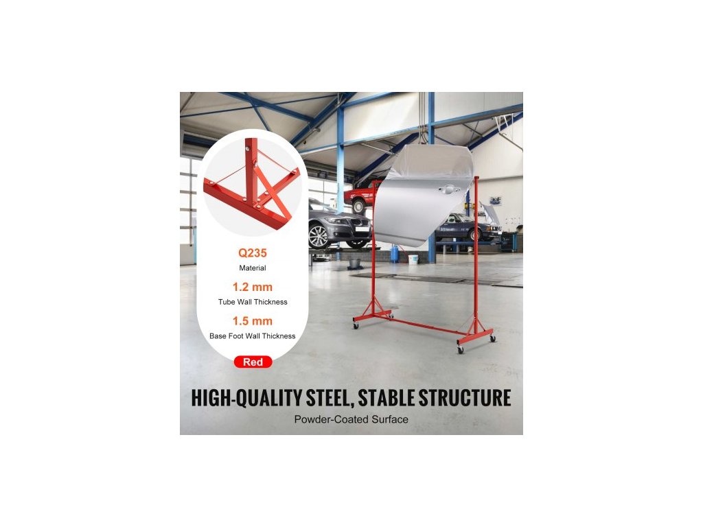 Stojan na lakování , nastavitelná výška 1,5–2,1 m, nosnost 29 kg, sušák na lakování s 8 háky a 4 otočnými kolečky, stojan na karoserii pro autoservisy a garáže