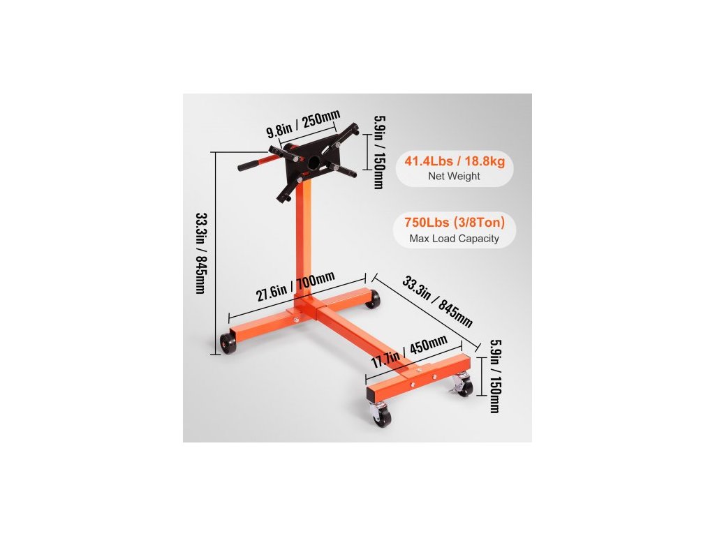 Stojan na motor , otočný stojan na motor 340 kg s 360stupňovou nastavitelnou hlavou, litinový zvedací vozík pro motor, 4 kolečka, 4 nastavitelná ramena, pro údržbu vozidel, opravy automobilů