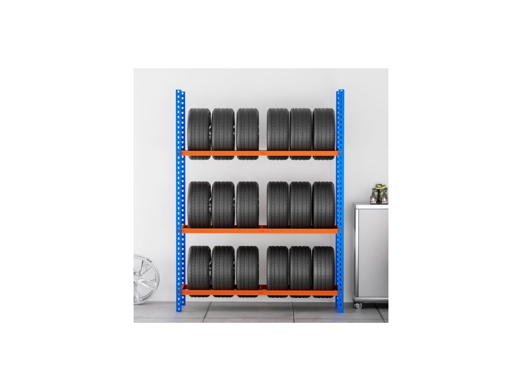 Stojan na pneumatiky , držák pneumatik se 3 policemi pojme až 18 standardních pneumatik, Stojan na pneumatiky SPCC-SD z odolného kovu s nastavitelnou roztečí pro garážovou dílnu, nosnost 660 liber (cca 300 kg)