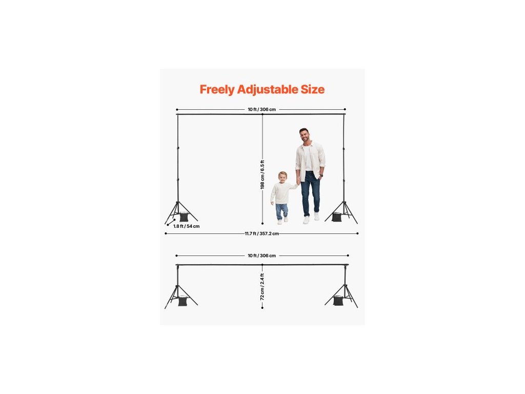 Nastavitelná výška: 2,4-6,5 stop / 72-198 cm,Nosnost: 10 liber / 4,5 kg,Barva: Černá,Číslo modelu položky: BJJ-6510,Materiál: Uhlíková ocel Q195,Rozměry látky na pozadí: 6,5 x 10 stop / 198 x 300 cm,Rozměry výrobku: 11,7 x 1,8 x 6,5 stop / 357,2 x 54 x 198 cm,Čistá hmotnost: 5,2 liber / 2,35 kg