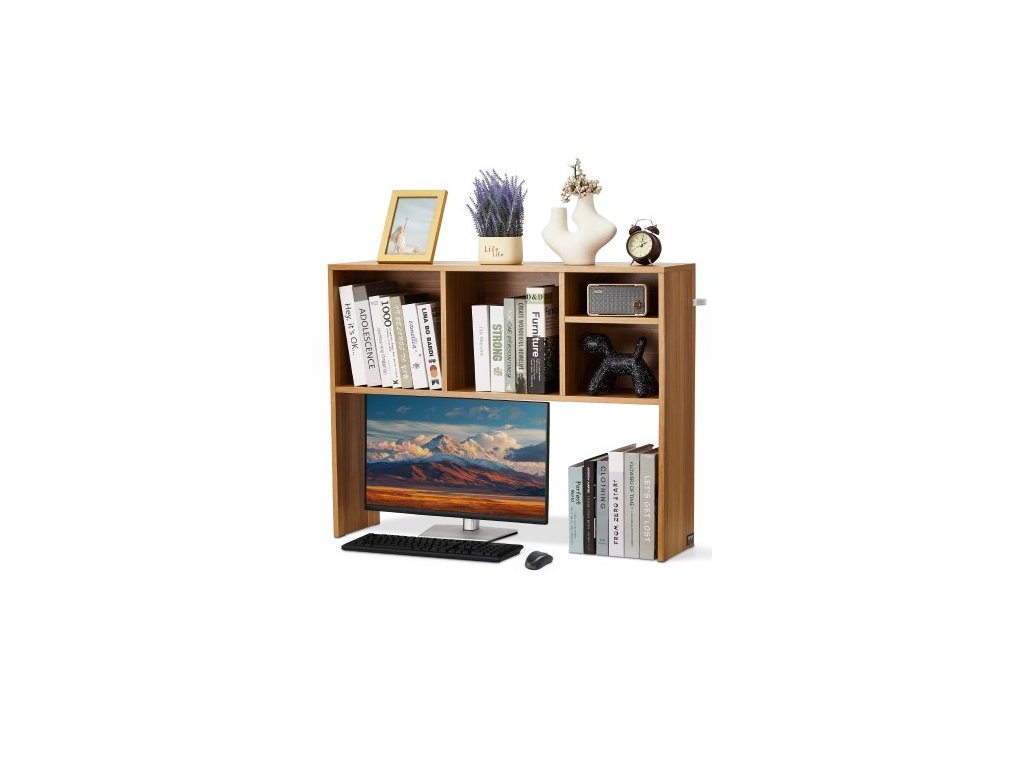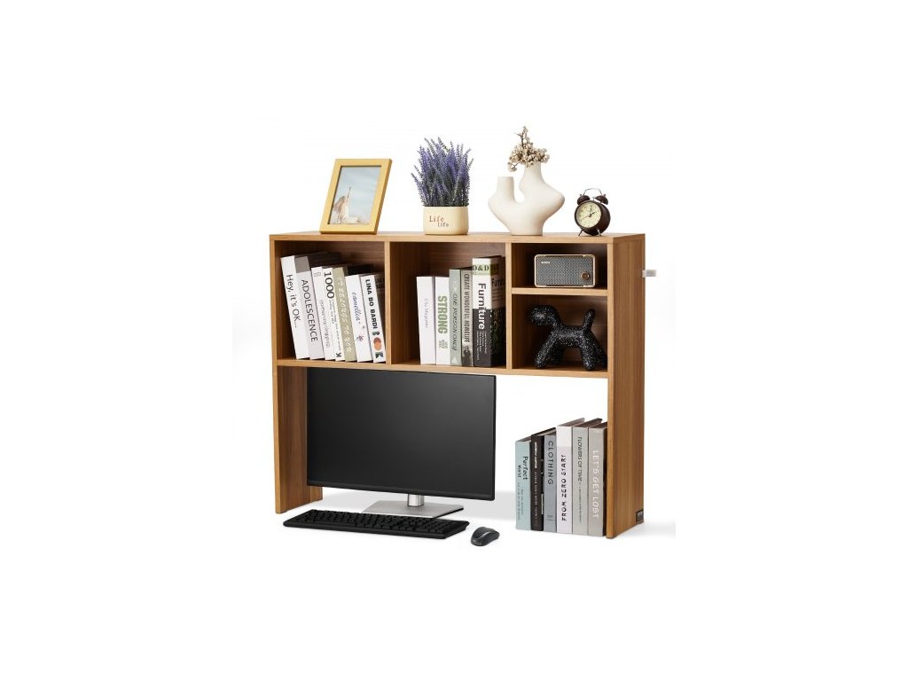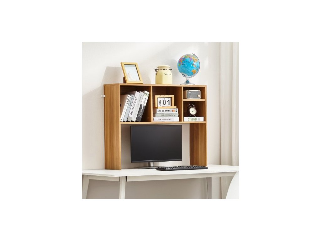 Stolní knihovna , 1patrový dřevěný úložný organizér na stůl, kancelářský úložný regál 94 x 23,4 x 73 cm, dřevěná police na vystavení, stolní polička s protiskluzovými nožičkami, pro kancelář, domácnost a studentský pokoj