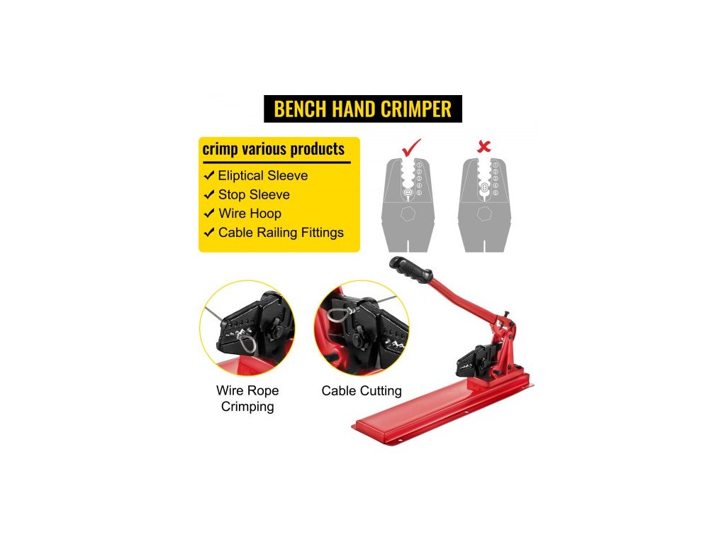 stolní krimpovací nástroj na drátěná lana 24" s krimpovací hlavou a řezačkou na kabelové šrouby, stolní krimpovací kleště 1/16"-3/16" hliníkové/měděné rukávy, stolní krimpovací kleště z legované oceli pro drátěná lana 1/2" Fe