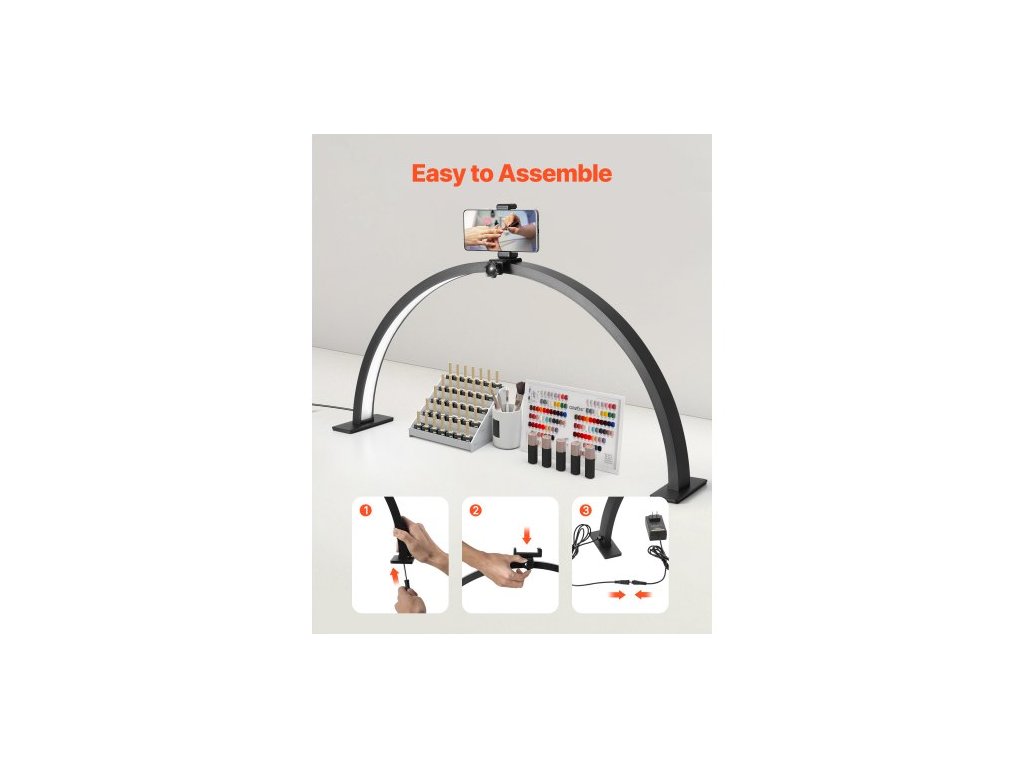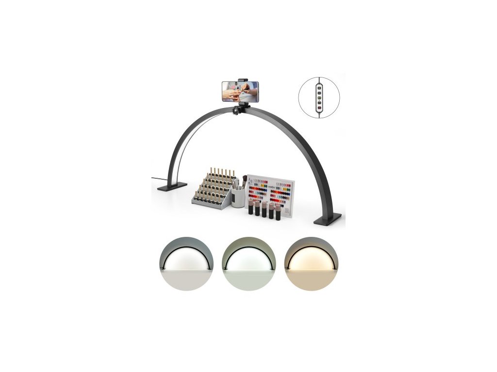 stolní lampa na nehty, 30W půlměsícová stolní lampa s držákem na telefon, nastavitelný jas a teplota barev, klenuté LED stolní světlo pro nehtové techniky, tetovací umělce, krásu, prodlužování řas