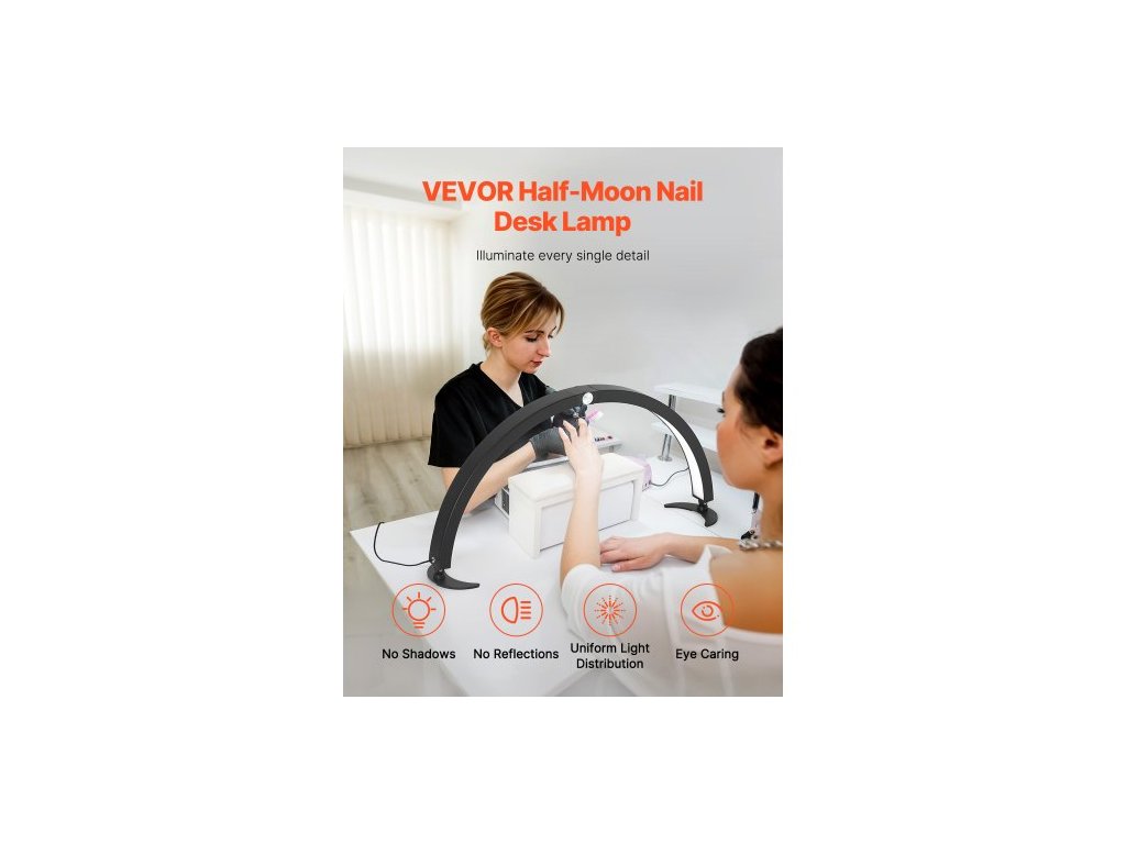 stolní lampa na nehty, 40W půlměsícová stolní lampa s držákem na telefon, nastavitelný jas a teplota barev, klenuté LED stolní světlo pro nehtové techniky, tetovací umělce, kosmetiku, prodlužování řas