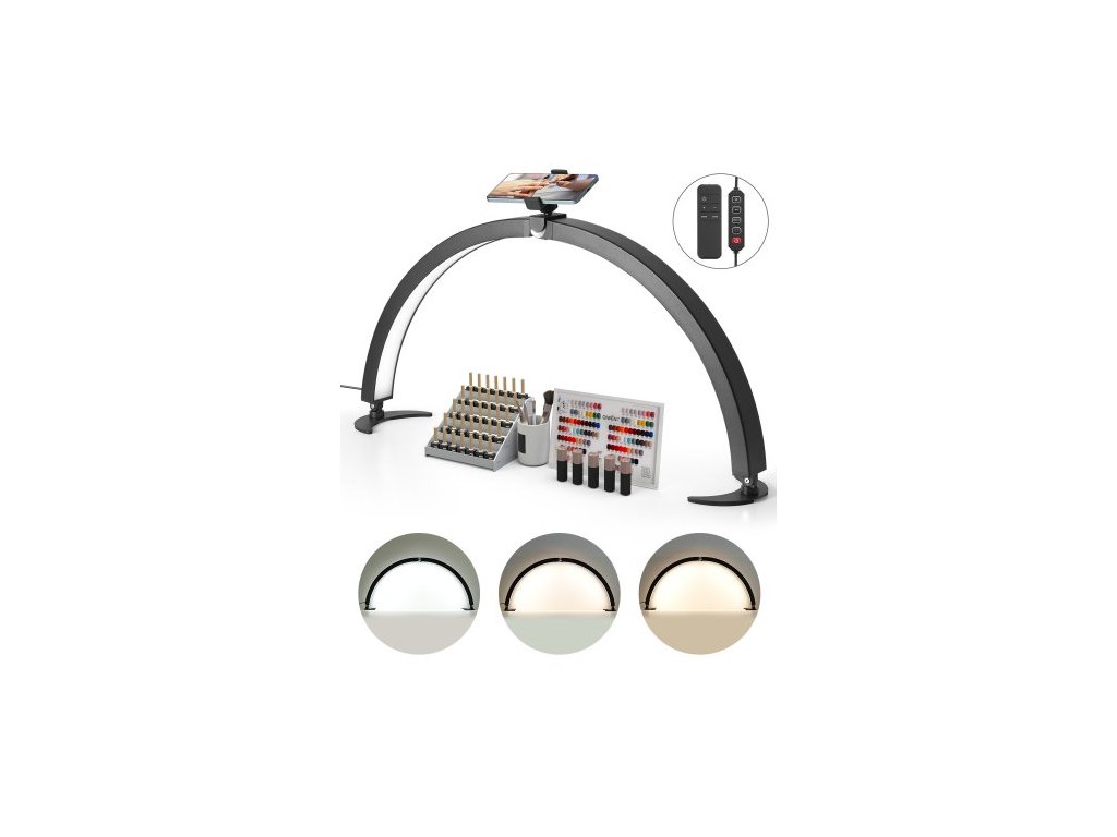 stolní lampa na nehty, 40W půlměsícová stolní lampa s držákem na telefon, nastavitelný jas a teplota barev, klenuté LED stolní světlo pro nehtové techniky, tetovací umělce, krásu, prodlužování řas