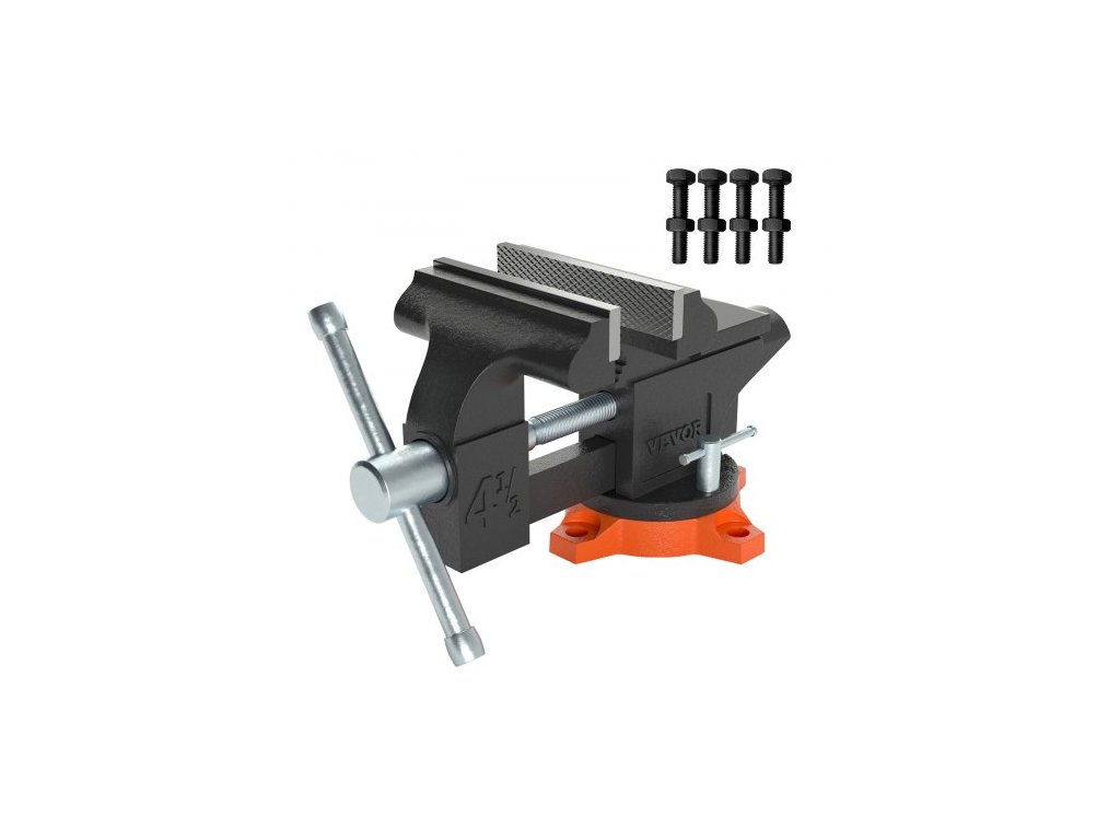 Stolní svěrák , šířka čelistí 114 mm (4,5 palce), rozevření čelistí 84 mm (3,3 palce), otočná a zamykací základna o 240 stupňů, víceúčelový svěrák s kovadlinou, vysoce odolný litinový pracovní svěrák se šrouby a maticemi, pro vrtání, řezání trubek