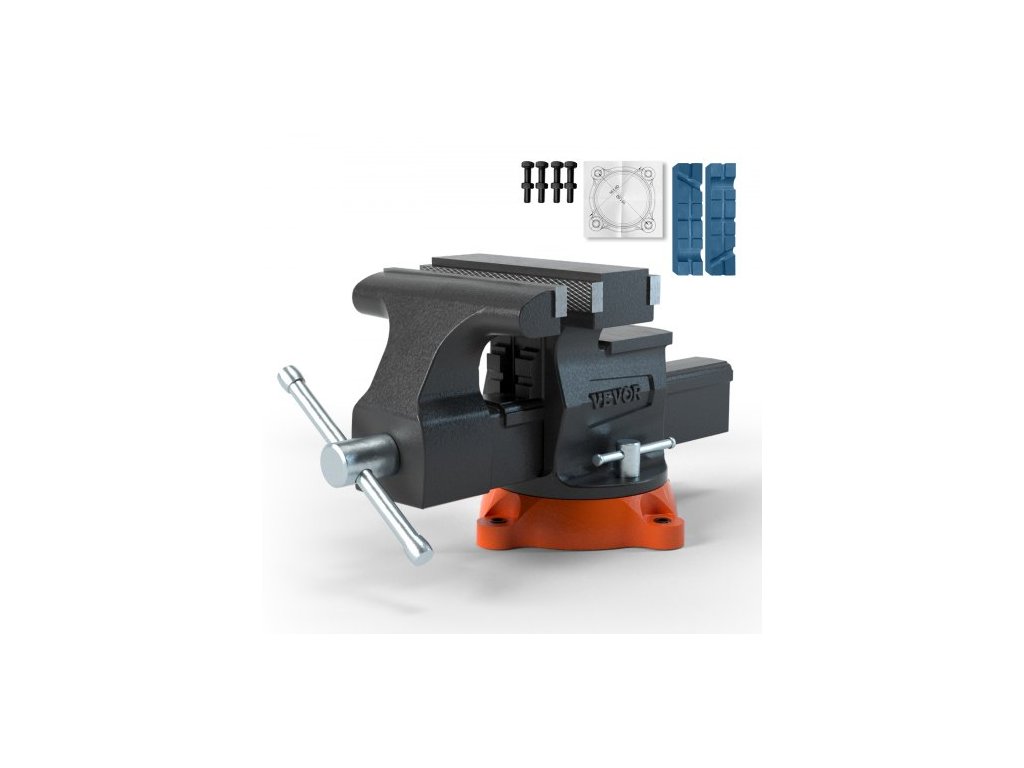 Stolní svěrák , šířka čelistí 16,5 cm, otevírání 16,5 cm vpřed a 23,6 cm vzad, otočná a zajišťovací základna o 360 stupňů, víceúčelový pracovní stůl s kovadlinou, těžká tvárná litina se šrouby a maticemi, pro vrtání a řezání trubek