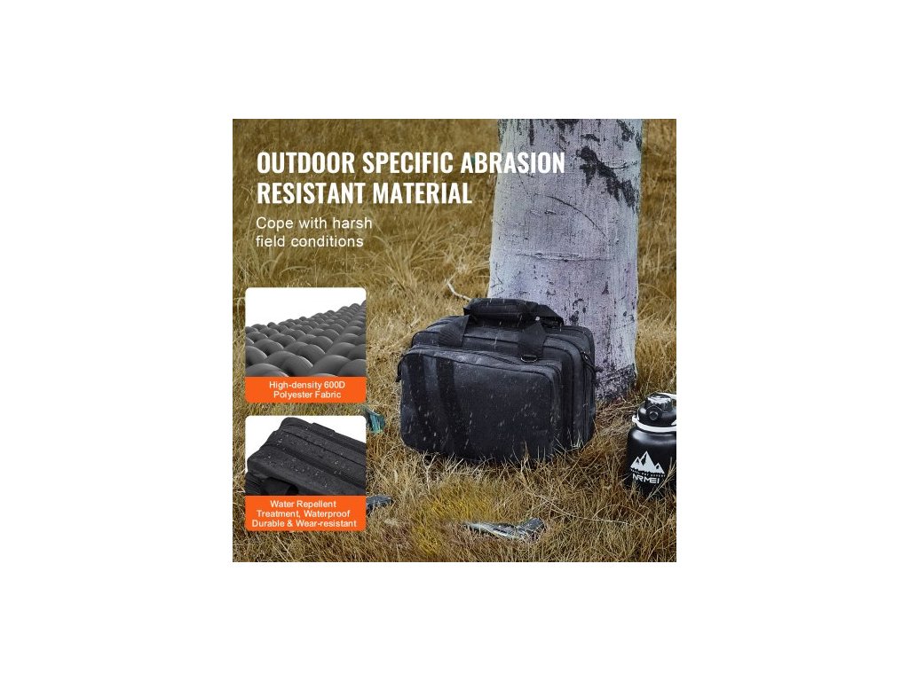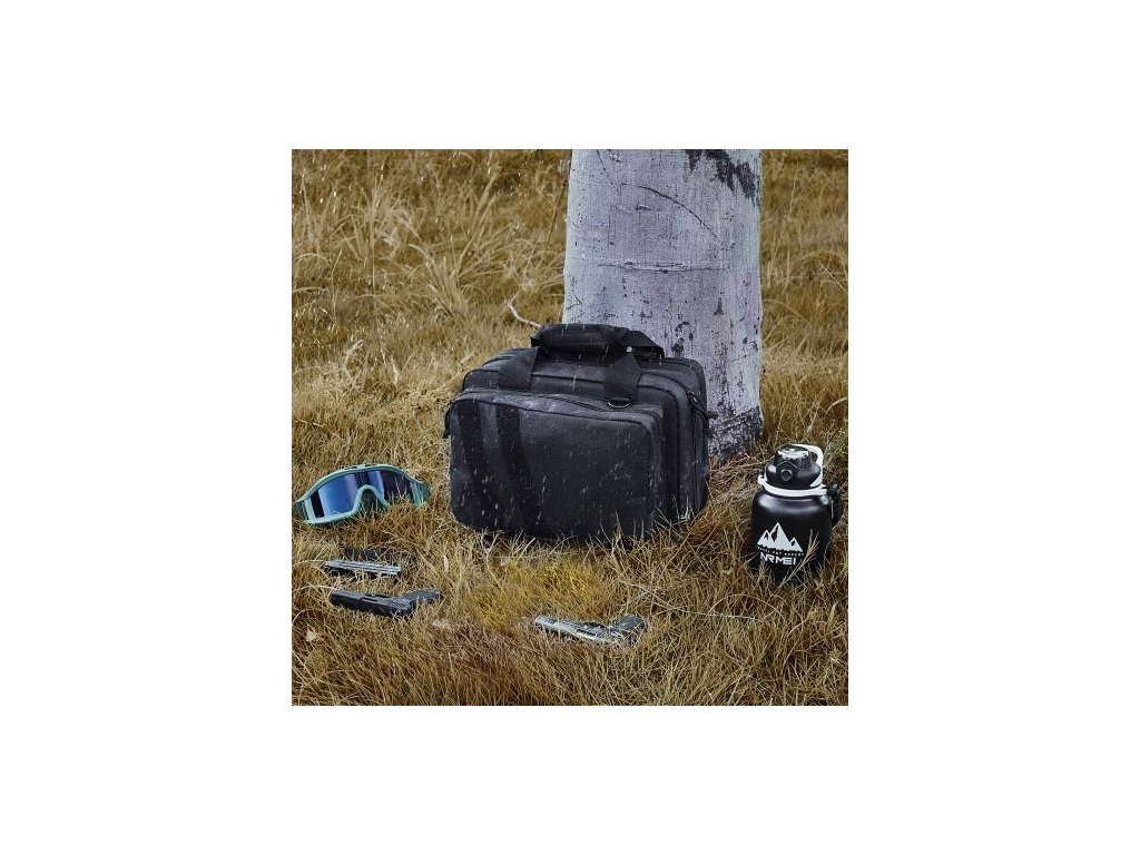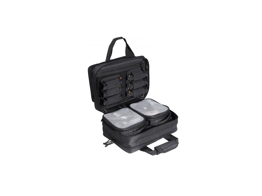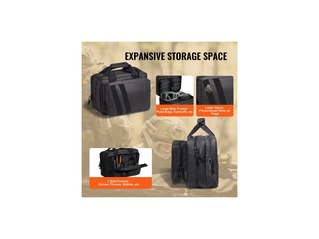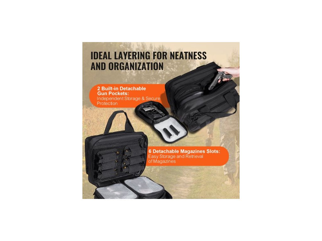 střelniční brašna pro 2 pistole, taktická střelniční brašna se 2 vestavěnými odnímatelnými pouzdry na pistole a 6 odnímatelnými zásobníky, střelniční brašna pro venkovní loveckou střelbu, uzamykatelné pouzdro na zbraň, černá